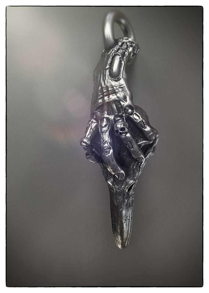 wollte Euch mal meinen neuen Anhänger zeigen, entstanden in Zbrush und dann 3D Print und Cast in Silber über Shapeways.