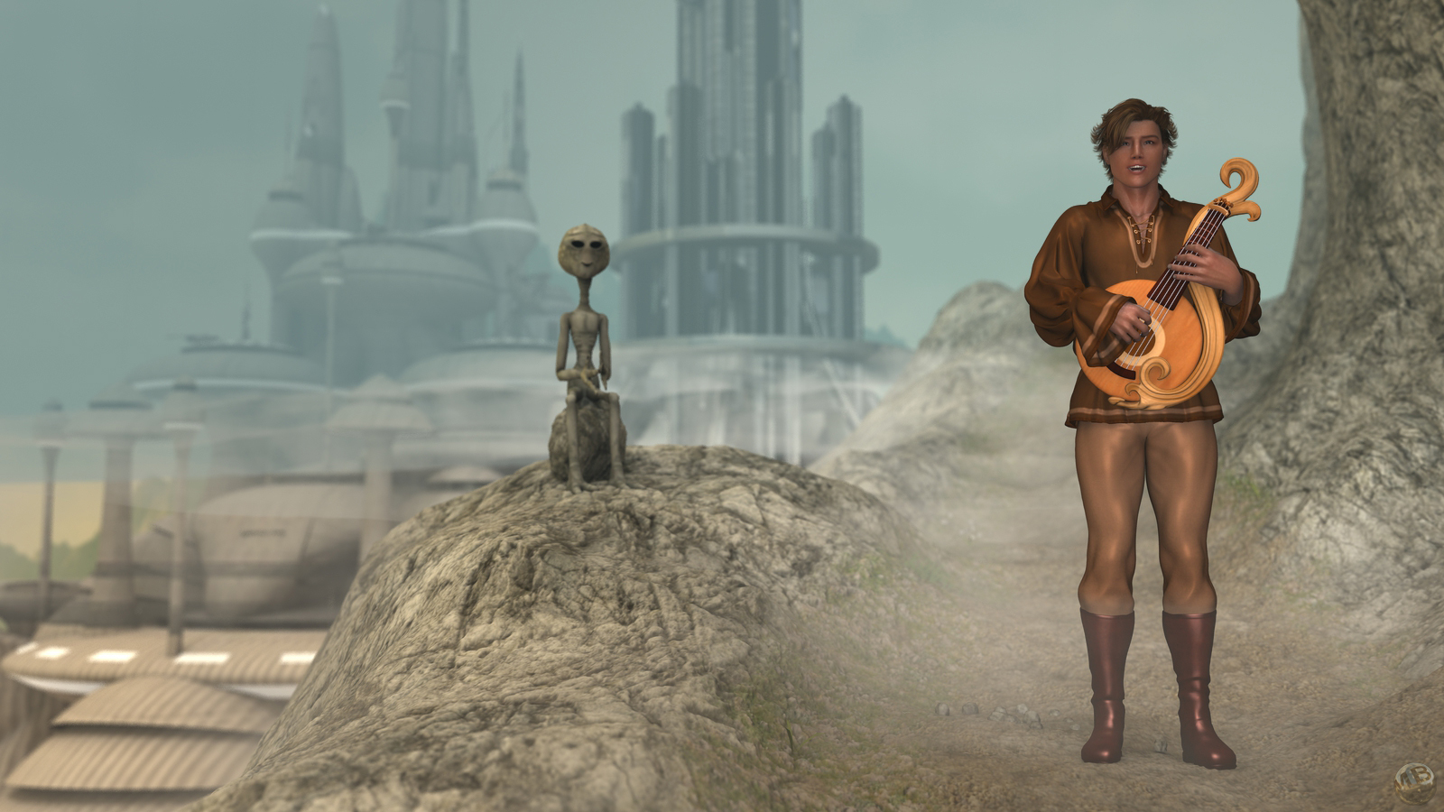 ...aber der Barde wirkt irgendwie "ins Bild genagelt" durch diesen kalt-/warm-Kontrast. ...Sehe ich genauso. Die Farbintensität des Barden passt nicht in das eher monochrome Gesamtbild. Davon ab ist der Render durchaus ausbaufähig und die Idee mal was anderes