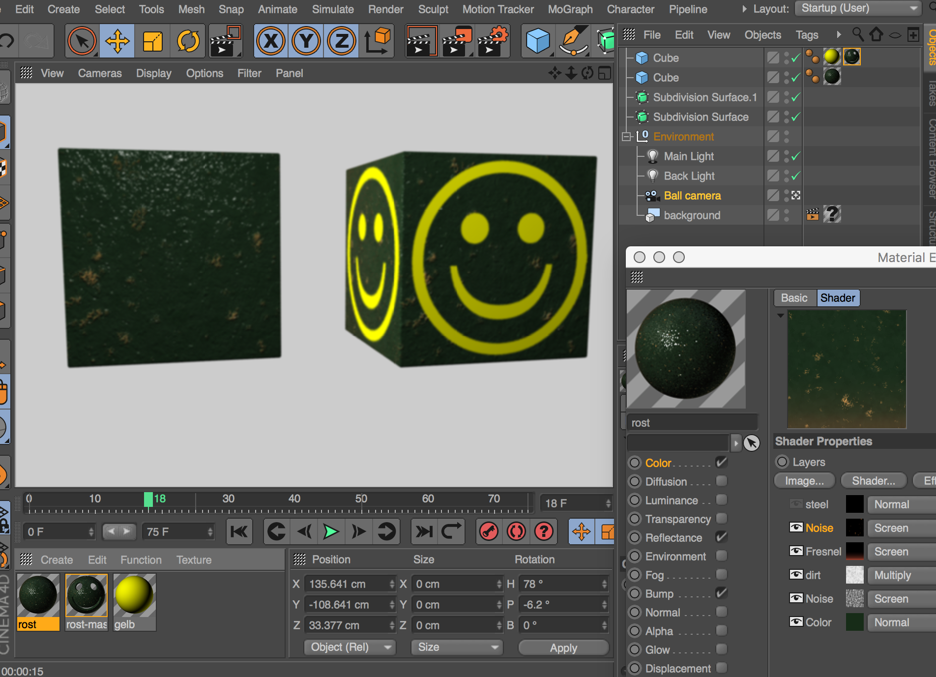 hier sieht man schön wie die Reihenfolge der Materialien sich auf das Objekt beziehen. Genau das, was ich vorher eigentlich mit Materialien machen wollte.
