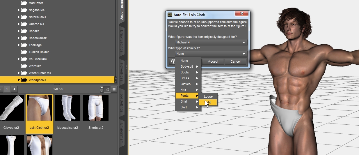 ich habe versucht, Kleidung von M4 nach Genesis zu transferrieren.