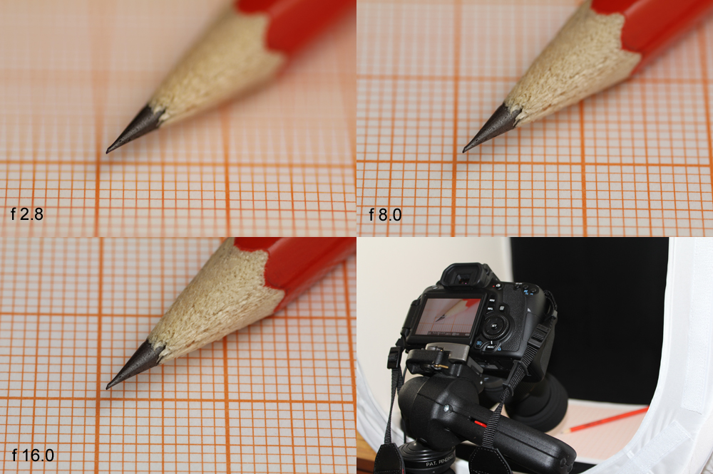 Schärfentiefe bei drei verschiedenen Blendenöfffnungen verhält.