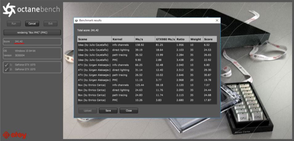 Auch oder gerade unter Octane mit mehreren Grafikkarten, die von Octane (im Gegensatz zu einer SLI Hardware Brücke) über die Software gesteuert werden.