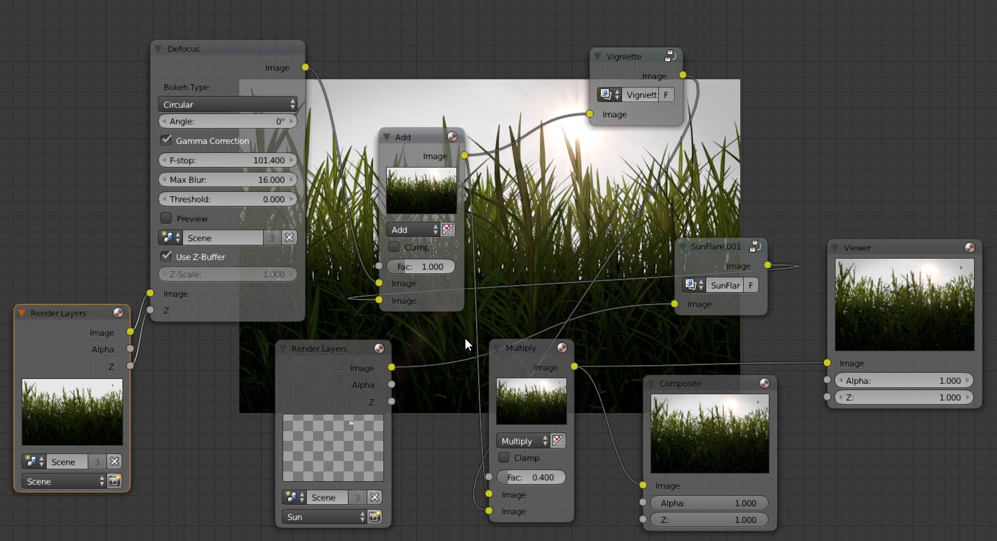 • Es scheint hier aber auch eine Möglichkeit zu geben, die Glare Compositing-Node erfolgreich zweckentfremden zu können, wie @kalifrago in ihrem Einfach nur 'Gras'-Bild anschaulich demonstriert hat. (Du hättest nicht vielleicht mal Lust, das dort von dir verwendete Composite-Node-Setup zu posten, oder? Wäre da wirklich mal neugierig! :) )