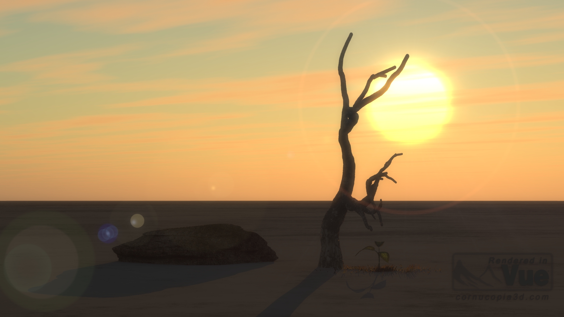 Tja, von diesen Gegenlicht Nummern kann ich irgendwie nie die Finger lassen, maXem :) Wird meiner Meinung nach viel zu selten eingesetzt. Billiger kann ich Atmosphäre und Dramaturgie (selbst in dünn besetzten Szenen) nicht bekommen, ...zumindest in Octane :P und offensichtlich auch in Vue. Die Sundown Szene war vielleicht 5 Min. Arbeit.