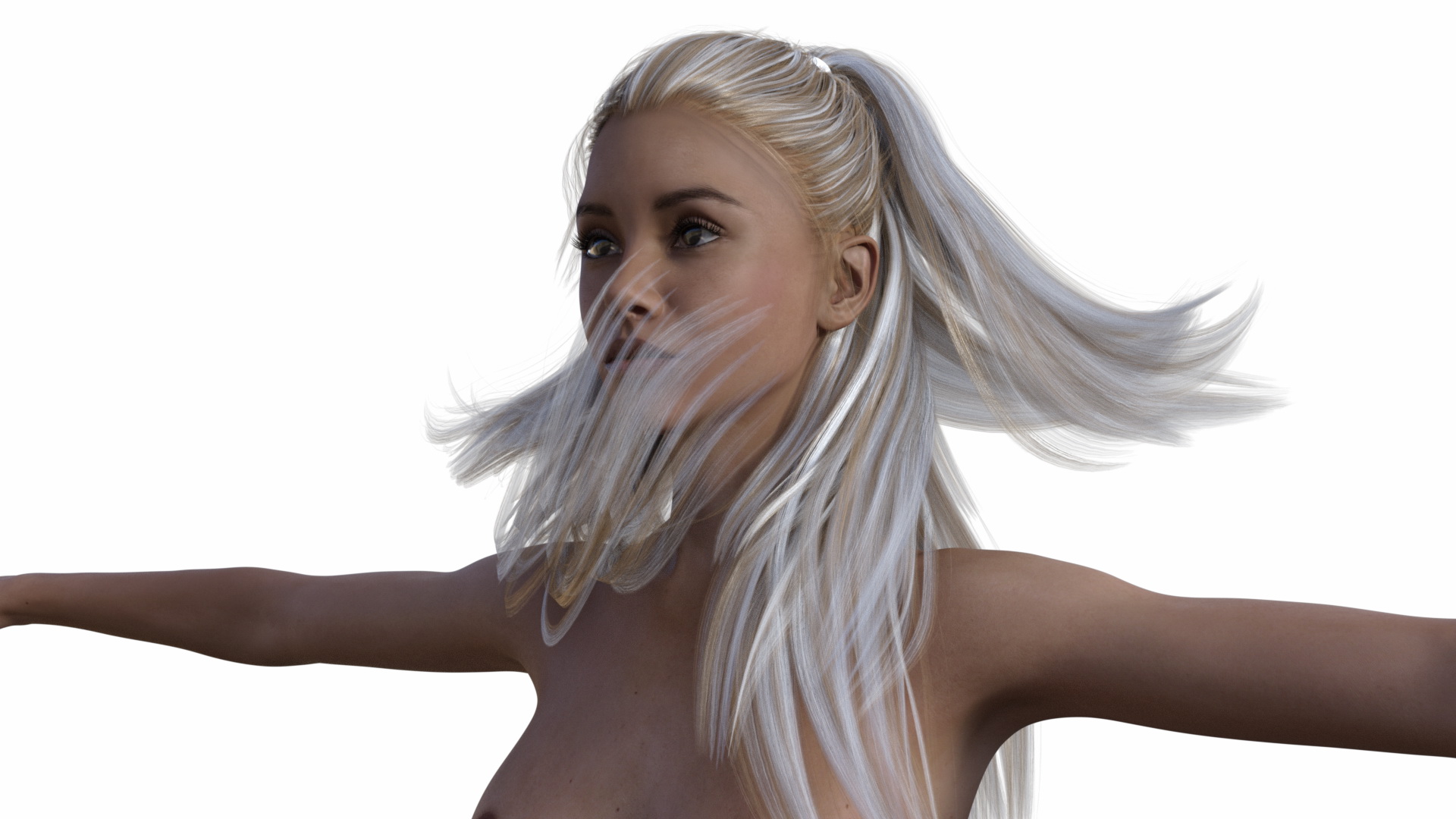 Figur und Kleidung arbeiten Topp, nur mit den Haaren komme ich nicht klar. Was der Ersteller sich mit den zusätzlichen Blending gedacht hat, bleibt mir bis jetzt ein Rätsel. Aber nicht nur das, die normalen Iray-Texturen funktionieren nicht.