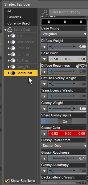 Noch ein größeres Problem: Diese Kleidung ist für 3DL, da sie vor Iray auf den Markt kam, aber einige Kleidungsstücke, wie der Coat glauben fest, dass sie Iray seien und bieten mir nur das Iray-Menü im Surface-Tab an, während andere, wie z.B. die Handschuhe fest auf 3DL beharren. Ich konnte das leider nicht ändern. Ich vermisse so einen 3DL-Base Shader, der alles Iray zu 3DL konvertiert. Ist mir leider noch nicht begegnet.