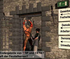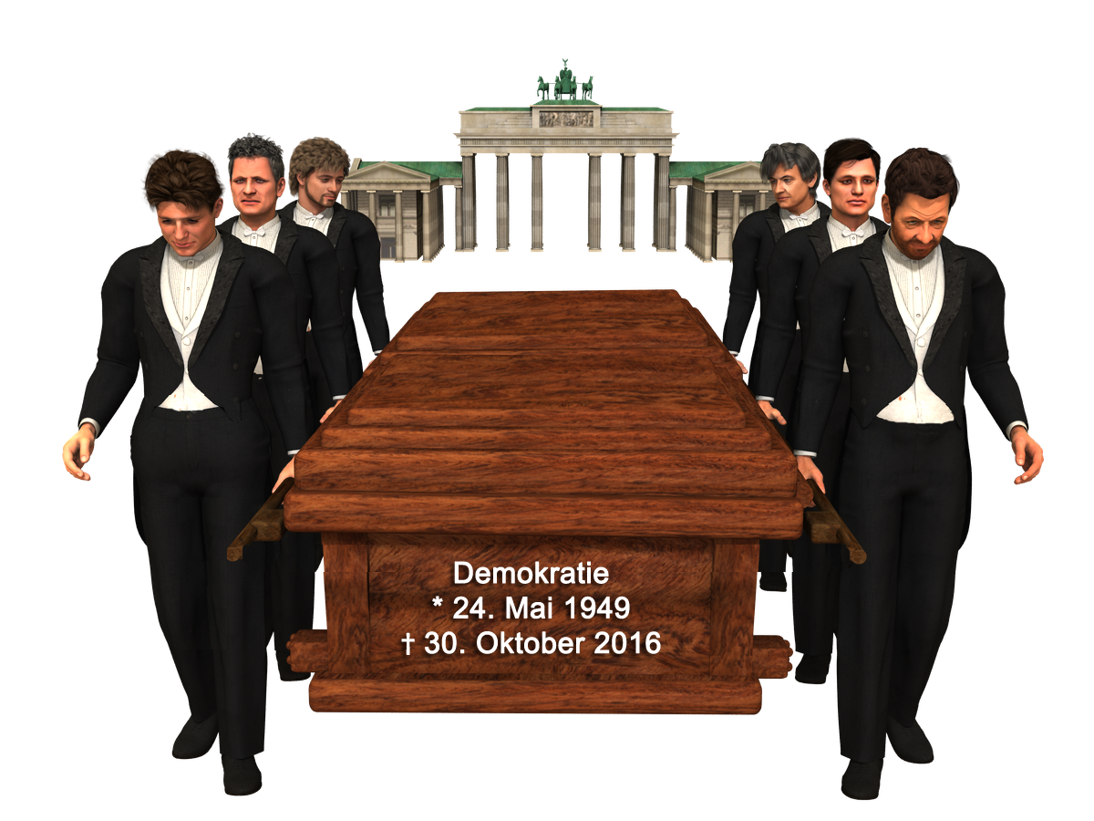 Ursprünglich hatte ich einen ganzen Trauerzug geplant, mit mehreren Särgen, wo draufseht "Arbeitnehmerrechte", "Umweltschutz", "Freiheit", "Urlaubstage", ... ist ja alles einklagbar, wenn ein Unternehmen meint, dadurch, dass ein Arbeitnehmer Urlaub hat, geht im Gewinn verloren ...Der Sarg (von CGBytes) war ein echtes Problem. Der lädt nämlich nicht richtig, ich musste da erst im Quellcode der Dateien etwas rumschrauben.