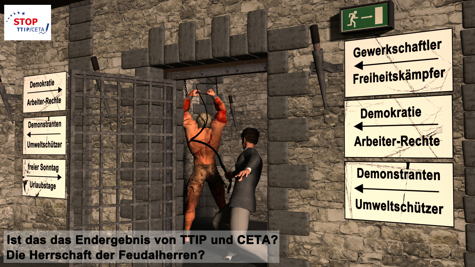 Ursprünglich hatte ich einen ganzen Trauerzug geplant, mit mehreren Särgen, wo draufseht "Arbeitnehmerrechte", "Umweltschutz", "Freiheit", "Urlaubstage", ... ist ja alles einklagbar, wenn ein Unternehmen meint, dadurch, dass ein Arbeitnehmer Urlaub hat, geht im Gewinn verloren ...Der Sarg (von CGBytes) war ein echtes Problem. Der lädt nämlich nicht richtig, ich musste da erst im Quellcode der Dateien etwas rumschrauben.