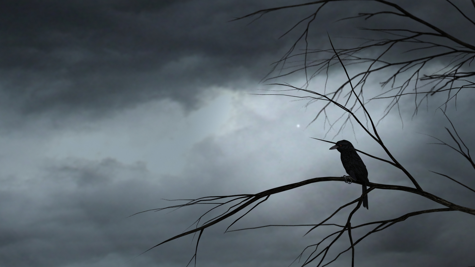 Der Rabe sitzt auf dem Baum und alles ist dunkel. Er stört hier zwar ein bisschen den goldenen Schnitt, aber anderwo wäre er fehl am Platze.