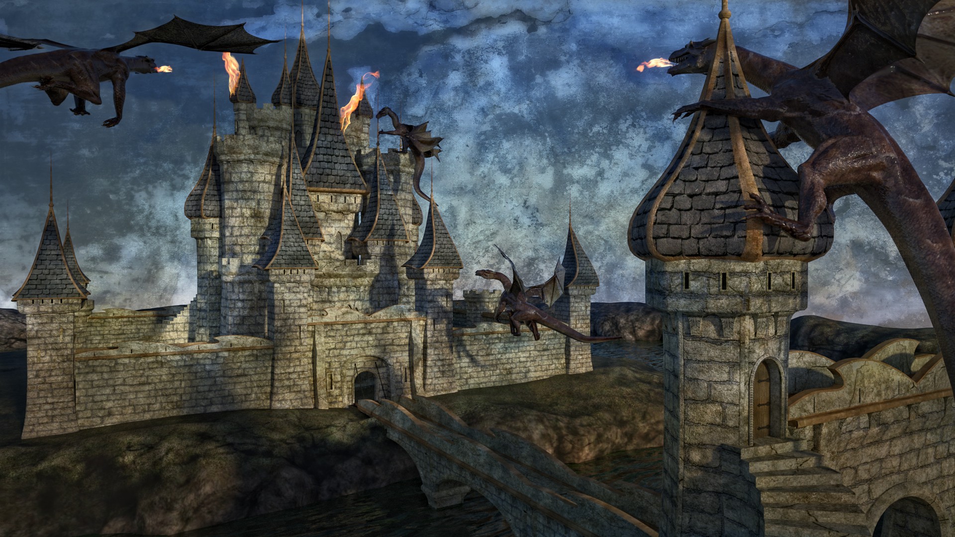 Beim "Mittelalter" kommt der eher flache, reliefartige Charakter der Burg sehr gut rüber, so hat man damals gemalt...