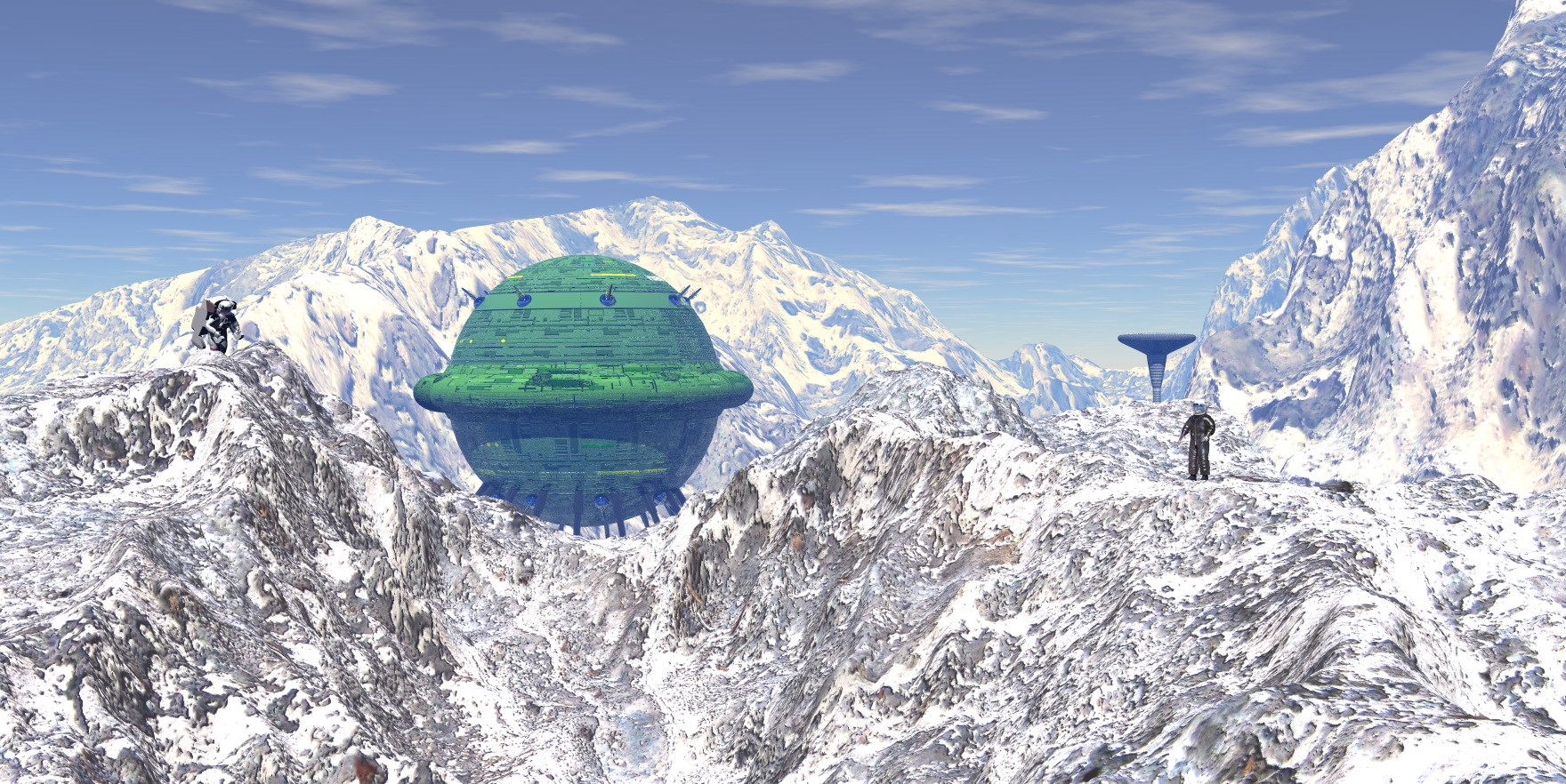 Eigentlich wollte ich nur mal DJ's Test.tga in Bryce ausprobieren. Das hat so einwandfrei geklappt, dass daraus gleich eine kleine Szene entstanden ist.