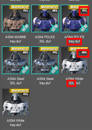 Diese kleinen Tags setzt nicht der Vendor, das macht die Datenbankfunktion von DS. Offensichtlich interpretiert DS dieses eine Material als MDL-Shader. Vielleicht sieht DS da was Falsches, vielleicht hat der Vendor sich beim Dateinamen vertan.