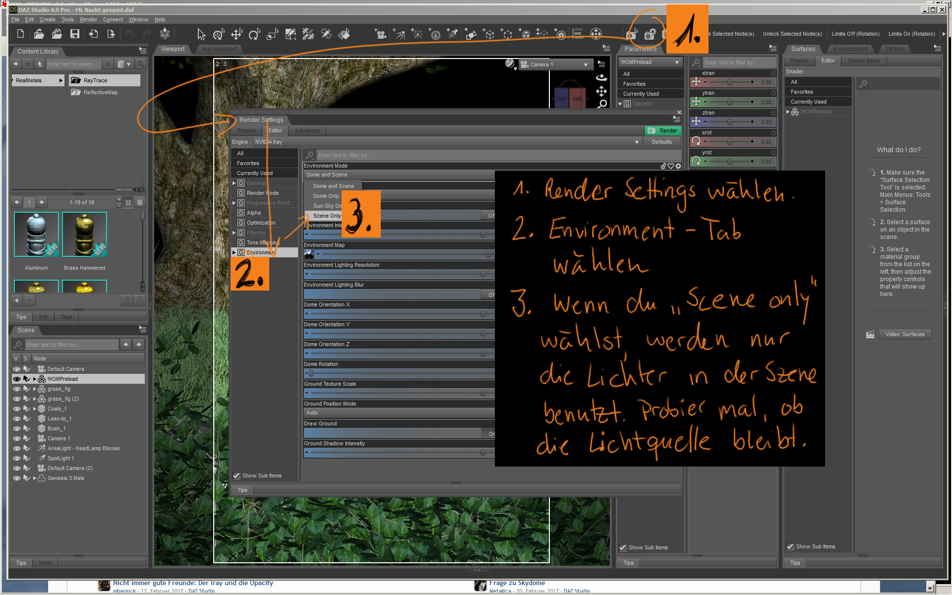 Habe in Bild 2 alle Szenenteile, ausser der Laterne ausgeschaltet. Für die Lichtquelle ist nichts zum ausblenden/ausschalten vorhanden.