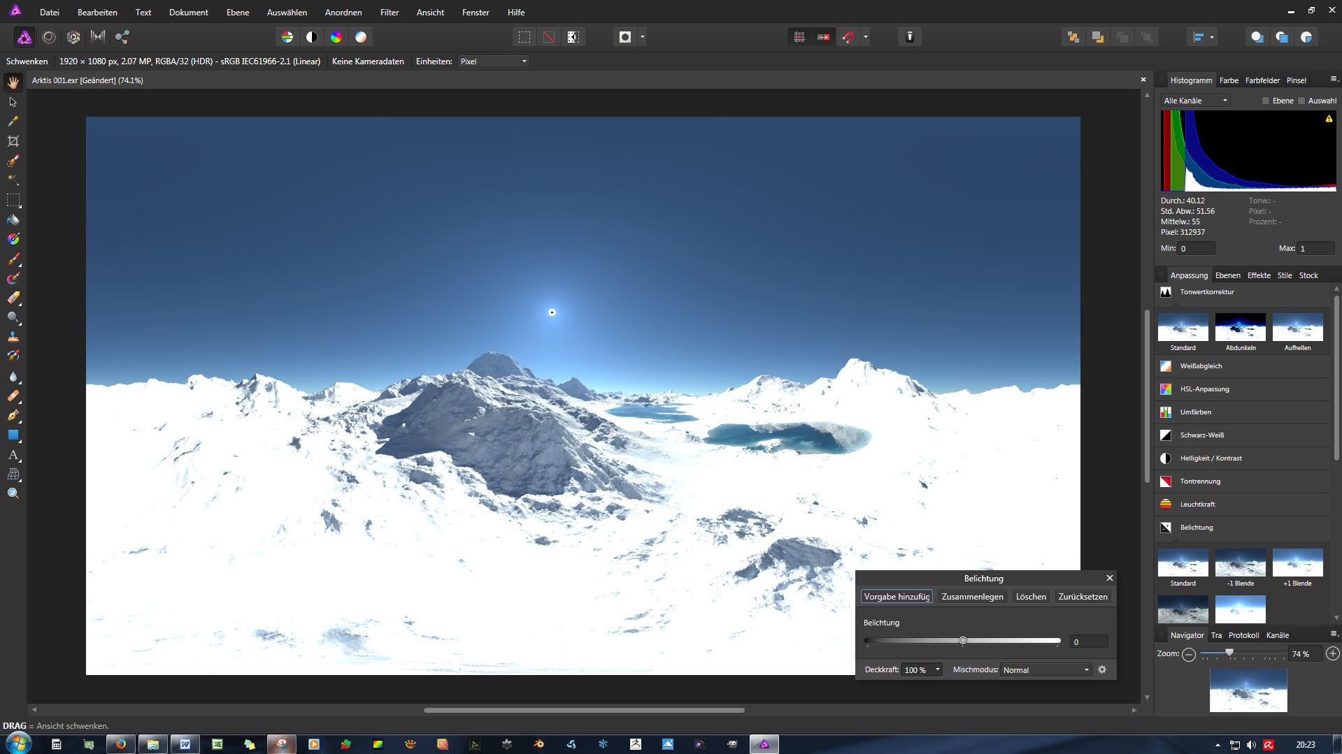 Die 10 Tage Demo habe ich mir gleich mal gezogen und jawoll, Affinity läd EXR Dateien und bietet gleich mal etliche Vorschläge im Tonemapping, zzgl. aller erforderlicher Manipulatoren. Compositer und Tonemapper werden hier ihre helle Freude haben
