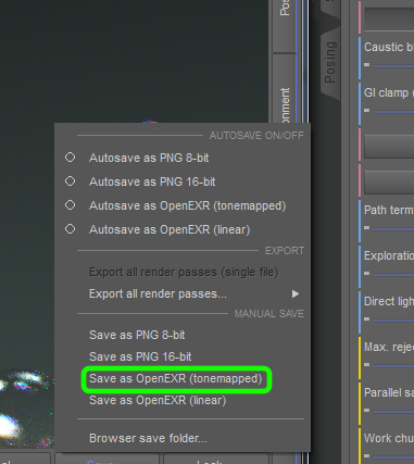 Diesmal jedoch speichere ich den Render im linearen 32Bit OpenEXR Format ab und öffne die HDR Datei anschließend in einem Tone Mapper,