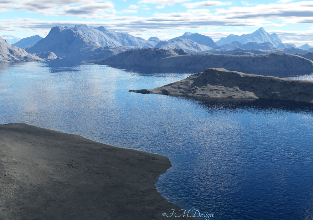 Ich hatte schon geschaut, ob ich terrains vom alten Terragen importieren kann, doch das ist anscheinend nicht moeglich. Ausserdem habe ich absolut keine Lust, mit mehreren Programmen arbeiten zu muessen, um das Gelaende zu gestalten, das mir vorschwebt. Die Gestaltungsmoeglichkeit sollte bei dem Preis (immerhin knappe 400 Euronen) schon vorhanden sein.Im RTP-mode ist die Vorschau ja recht schnell, die Renderzeit ist allerdings fuer ein kleines Bild (800x450) mit ein paar Wolken und Wasser (fuer meinen Geschmack) zu lang. Knappe 2 Minuten und mein Alien schafft da ganz andere Sachen. Naja, vielleicht bin ich in diesem Punkt einfach nur verwoehnt.