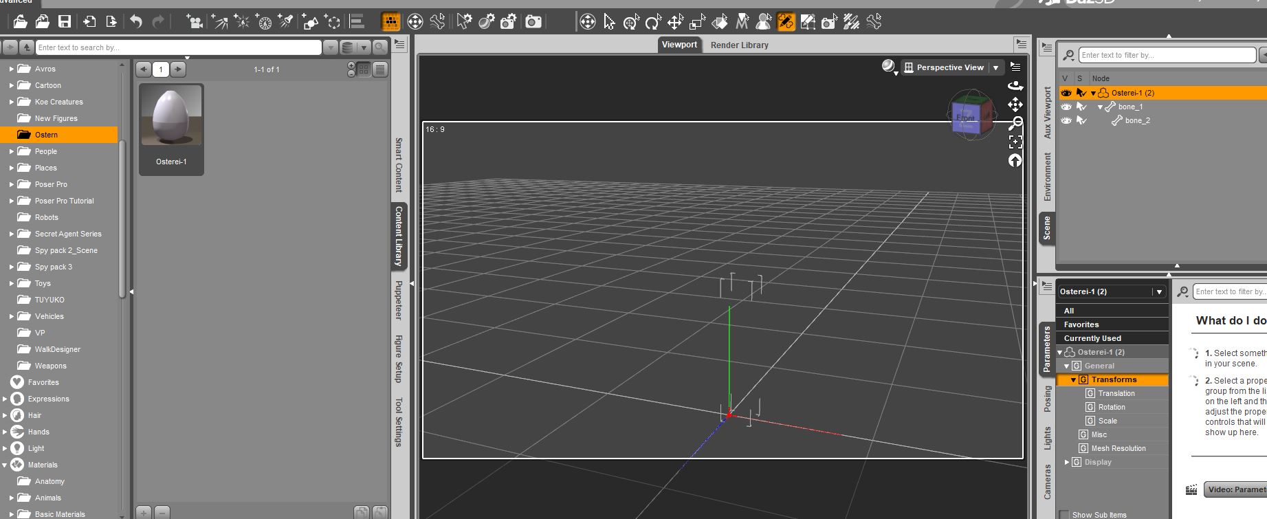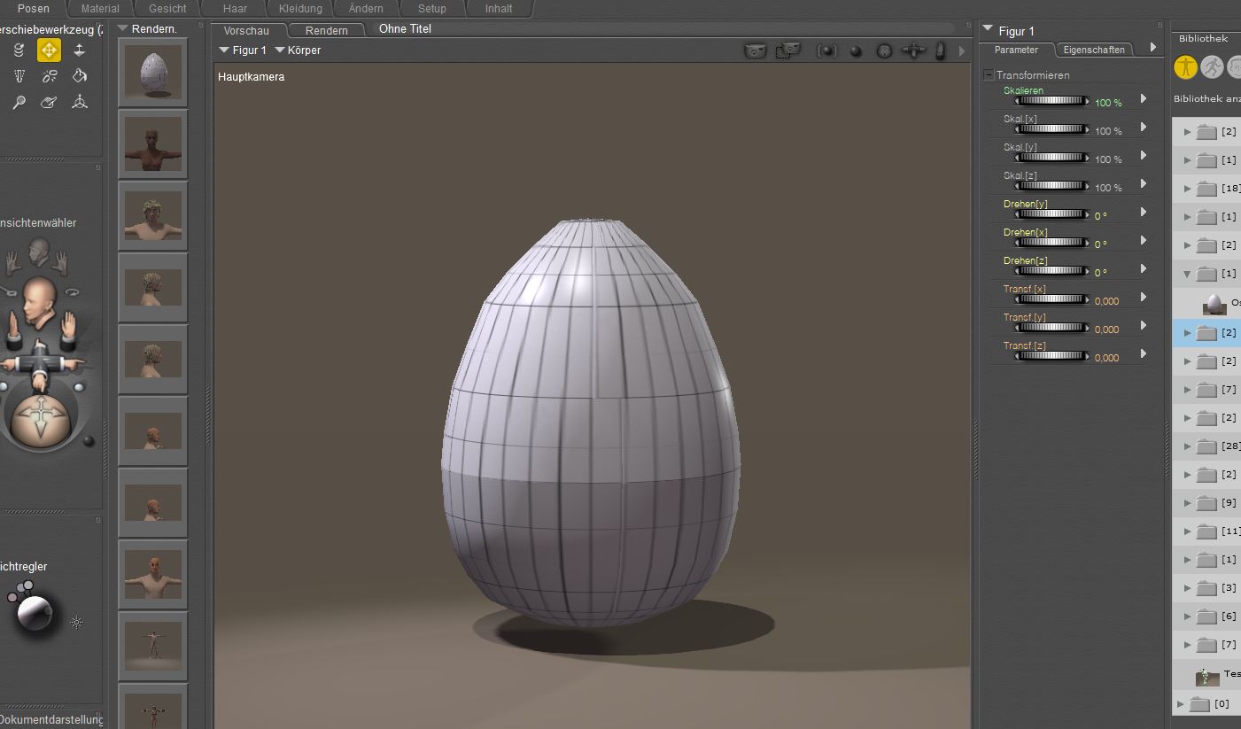 Habe Poster2014 in Deutsch, habe ein Osterei mit 2 Knochen versehen, gruppiert. in Poser kann ich das Ei Bewegen, wenn ich es in DAZ aufmache, sehe ich die Knochen, jedoch vom Ei nigs, keine Ahnung woran es liegt, habe schon andere Sachen probiert nigs.