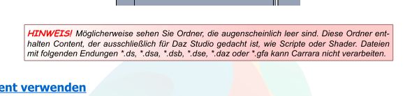 • Mir war nur vor kurzem bei einem Produkt aufgefallen, dass ich manuell heruntergeladen hatte. Es war als Ordner in Carrara gelistet, aber ohne Inhalt.