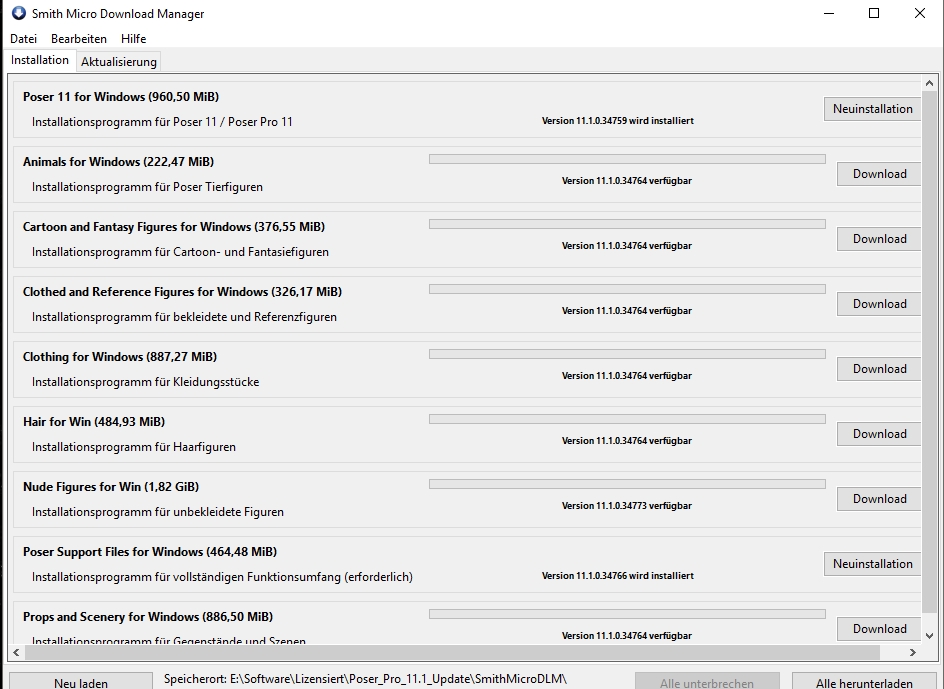 Die haben tatsächlich ein derartiges Versionsnummern-Gewirr zwischen den einzelnen Dateien, dass man zuerst im Reiter "Aktualisierung" das Programm-Update vornehmen muss (s. Screenshot1) und danach aus dem Reiter "Installation" die Support Files und Nude Figures nachinstallieren muss. Nur so wurde -zumindest bei mir- der Pfad gefunden und akzeptiert.
