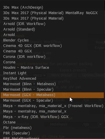 3D Coat bietet mir neben dem Einzelexport der Texturen auch die Möglichkeit das gesamte Modell mit Maps speziell für verschieden Anwendungen zu exportieren: