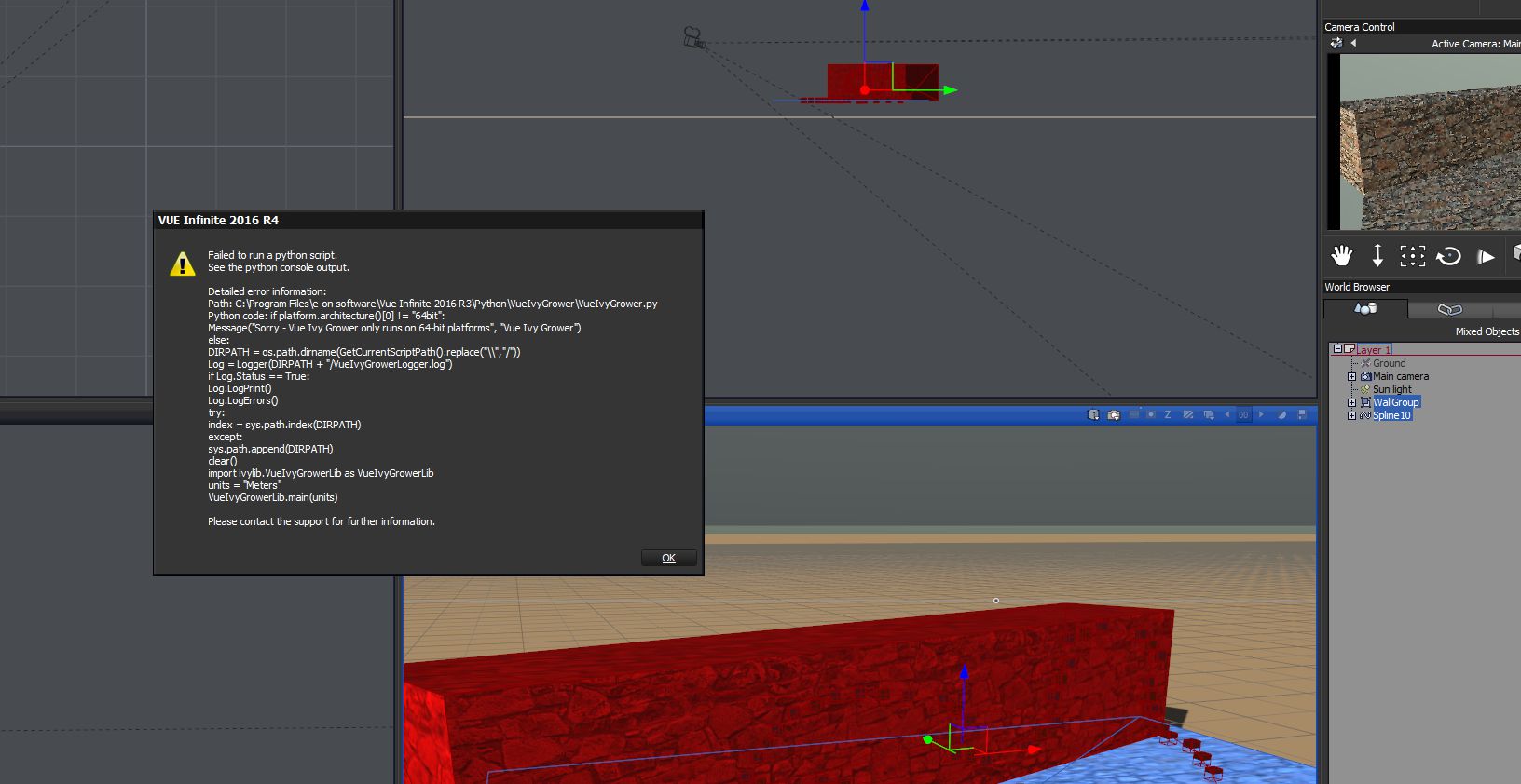 Moglicherweise ein Python Script Problem, damit kenne ich mich aber leider nicht aus. Nach Python-bezogenen Fehlermeldungen kann ich mich entsinnen, Vue einfach mal neu installiert zu haben und danach funktionierte wieder alles (betraf damals aber nicht den Ivy Grower).