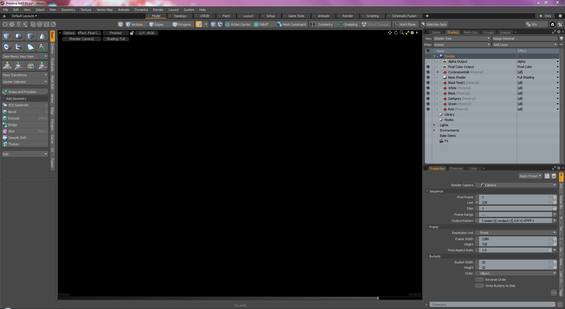 Die Renderengine in unserer 3D Welt ist eine Lichtmaschine. Insofern sind Material (Shader/Texturen) und deren Bearbeitung auch korrekter Weise in der Renderengine anzusiedeln. Warum? Kaum einer denkt daran, aber die Welt die wir zu sehen meinen sind nur Lichtstrahlen, welche von den Objekten um uns herum (Emissionen ausgenommen) reflektiert werden, am Ende auf unsere Netzhaut treffen und in unseren Gehirnen zu einem Bild verarbeitet werden. Im 3D Raum genauso wie in der Realität. Versehen wir also die Objektoberflächen im Raum nicht mit Materialien, sieht es im Render View so aus.