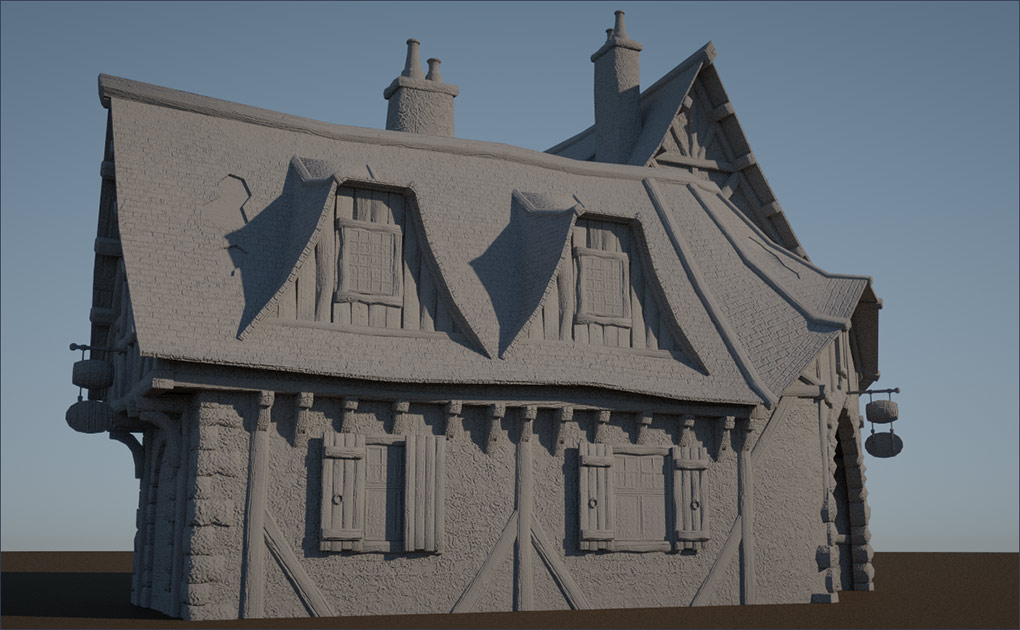 In so einem Fall verwende ich für die Beleuchtung ein schlichtes SunSky-System (Sonne + Himmels-Umgebungslicht), da ich auf diese Weise recht harte Schattenwürfe habe und bei Bedarf auch eine der beiden Komponenten ohne größere Aktionen kurz ausknipsen kann, was in bestimmten Fällen wirklich praktisch ist.