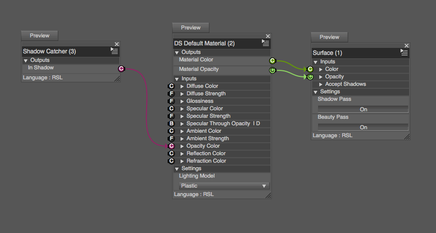 ich bin recht neu in DAZ Studio und möchte meine Figuren samt Schatten, aber ohne Untergrund in Photoshop weiterbearbeiten. Ich habe es nach einem Youtube Video versucht, die plane will aber nicht unsichtbar werden. Meine Schritte waren: Erzeugen der plane und eines Objektes darauf sowie einer Lichtquelle für den Schatten. Die plane in scene und surface angeklickt. Im shader mixer den shadow catcher erzeugt und mit opacity colour verbunden. Danach die Einstellung angewendet, der Shader änder sich, aber die plane bleibt sichtbar. Was mache ich falsch?