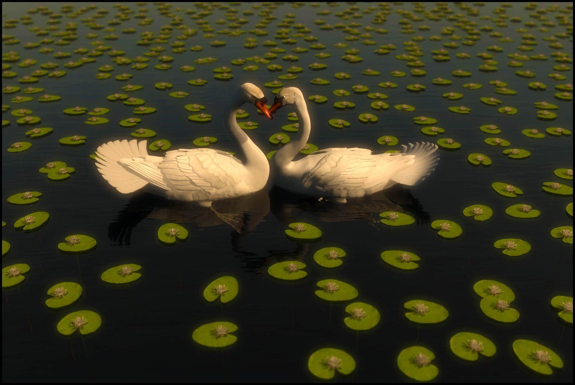 .....ein paar Bewegungswellen um die Schwäne herum, würde es nicht gar so kitschig aussehen lassen.LG