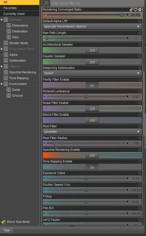 Was mir in deinen Screenshots auch noch auffällt: du hast die Helligkeit des Environments heruntergeschraubt. Weniger Licht bedeutet in Iray normalerweise längere Renderzeiten.