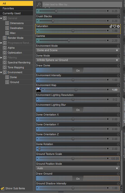 Stell den Wert bei Environment Map wieder auf 2 und erhöhe stattdessen den Exposure Value unter Tonemapping, damit es dunkler rendert.