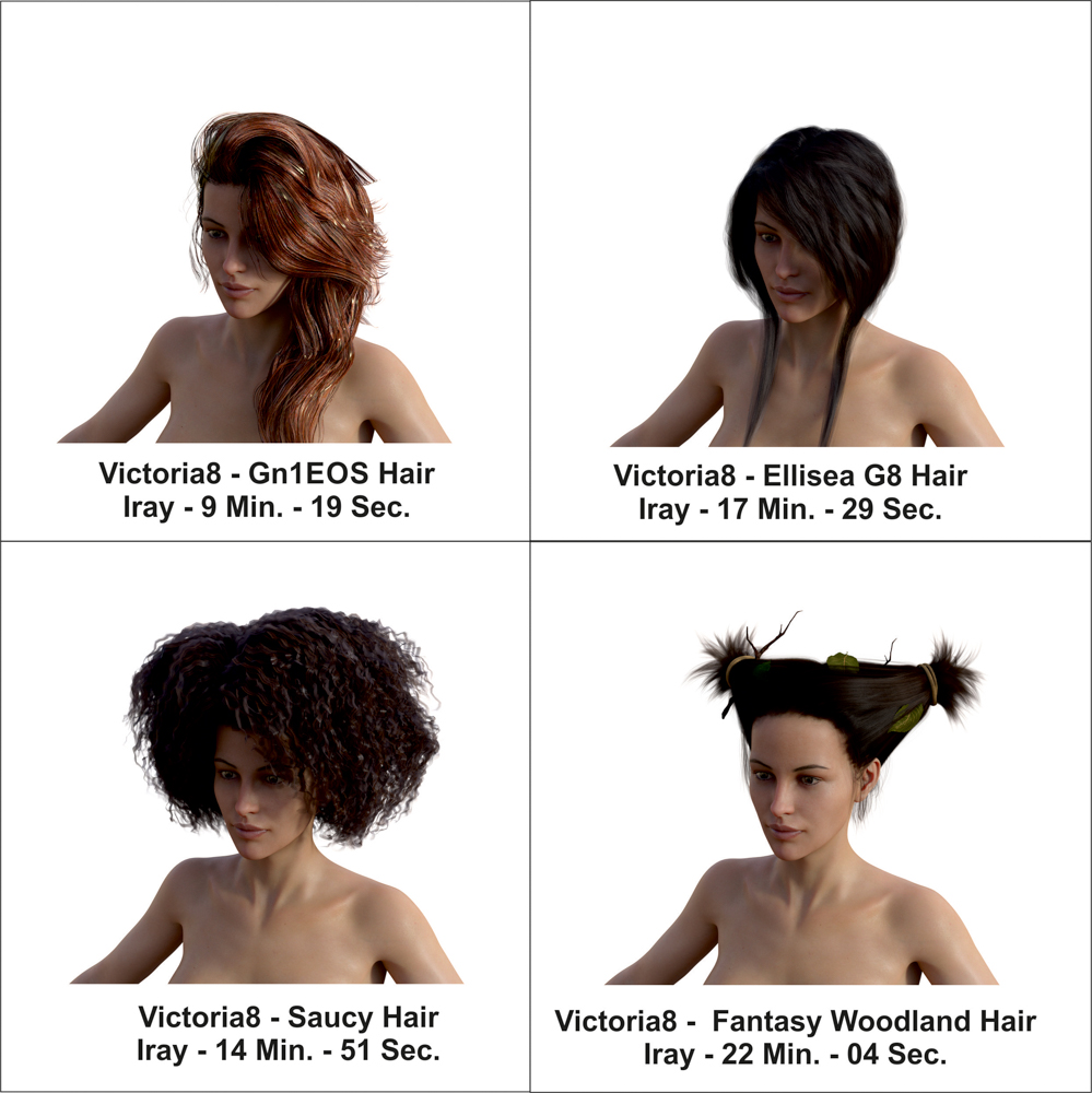 Alles ist mit Iray gerendert - Vic8 /ohne Haare ist auch dabei, damit man sieht, wieviel die Frisur ausmacht.
