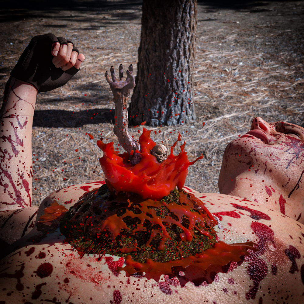 Nicht erklärbar ist mir der grüne Mooshügel. Wolltest Du damit die aufgerissene Haut kaschieren?