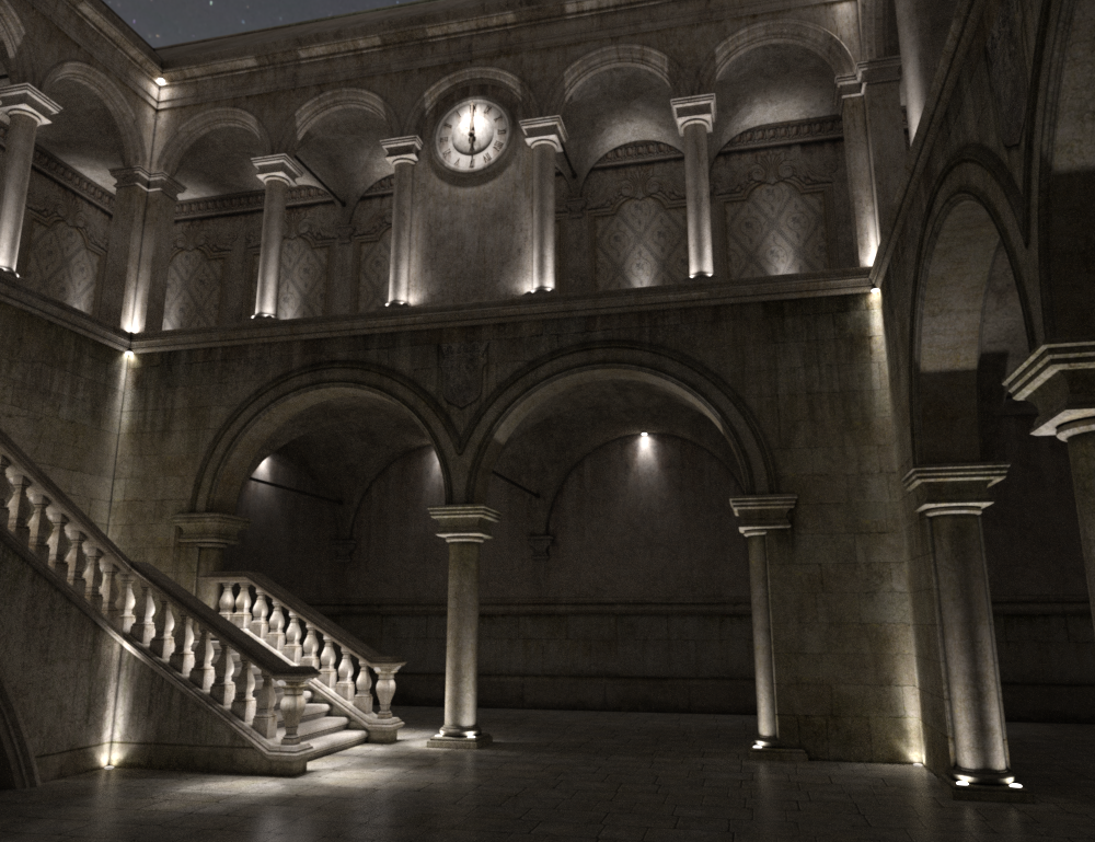 Ganz ohne irgendwelche Lampen, einfach indem ich in einen Grey Image Kanal (hier speziell IES) die entsprechenden IES Daten lade, die manche Rendermaschinen gleich mitliefern, zzgl. haufenweise freier IES Lights im Netz, u.a. bei allen namhaften Lampenherstellern. Am Ende ist es dann ähnlich wie mit der globalen HDRI Beleuchtung, nämlich sehr einfach und mit schier unendlichen Möglichkeiten.