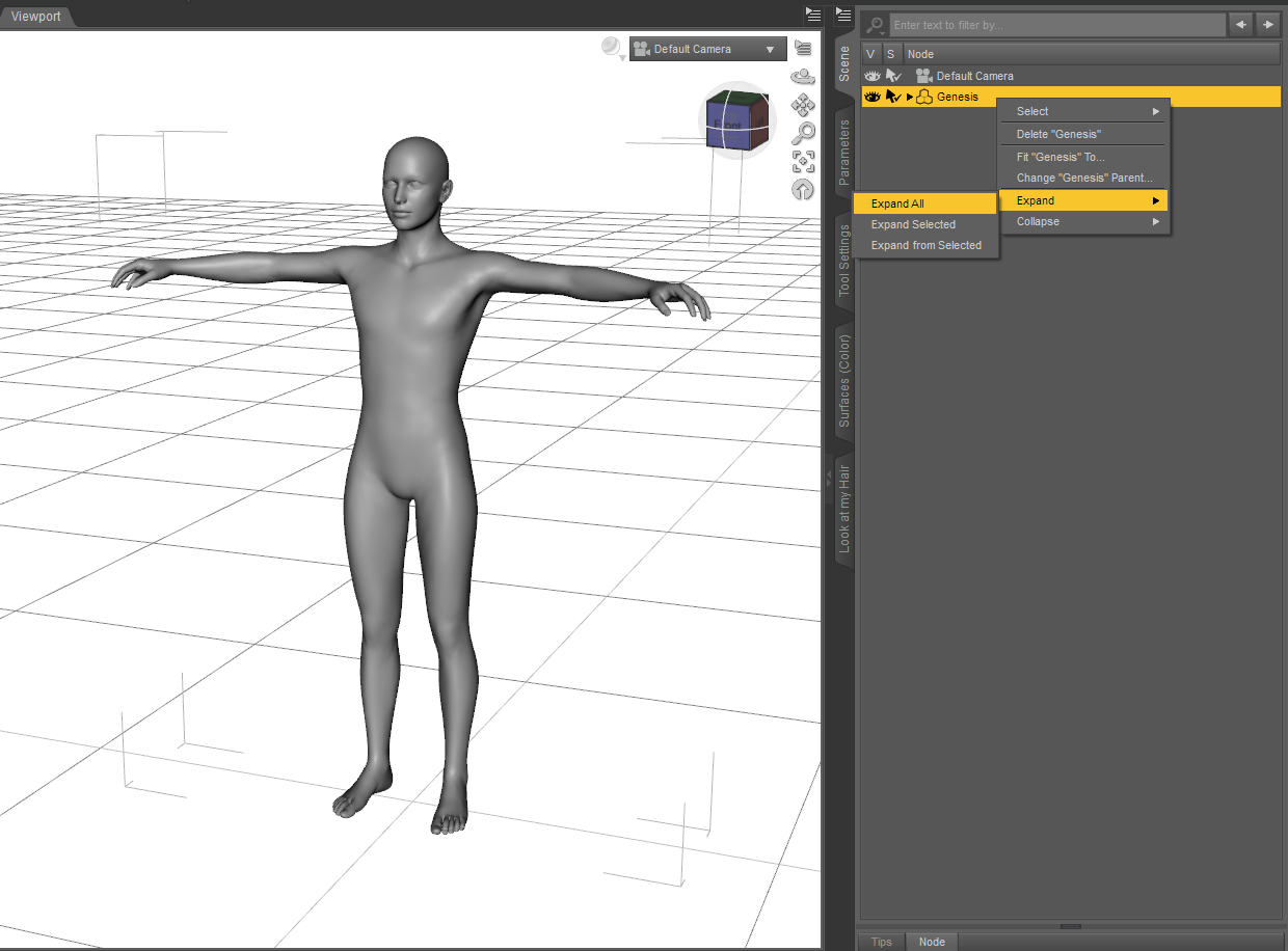 b) Klappe im SCENE Tab Deine Figur auf (oder Rechtsklick Expand > Expand all :