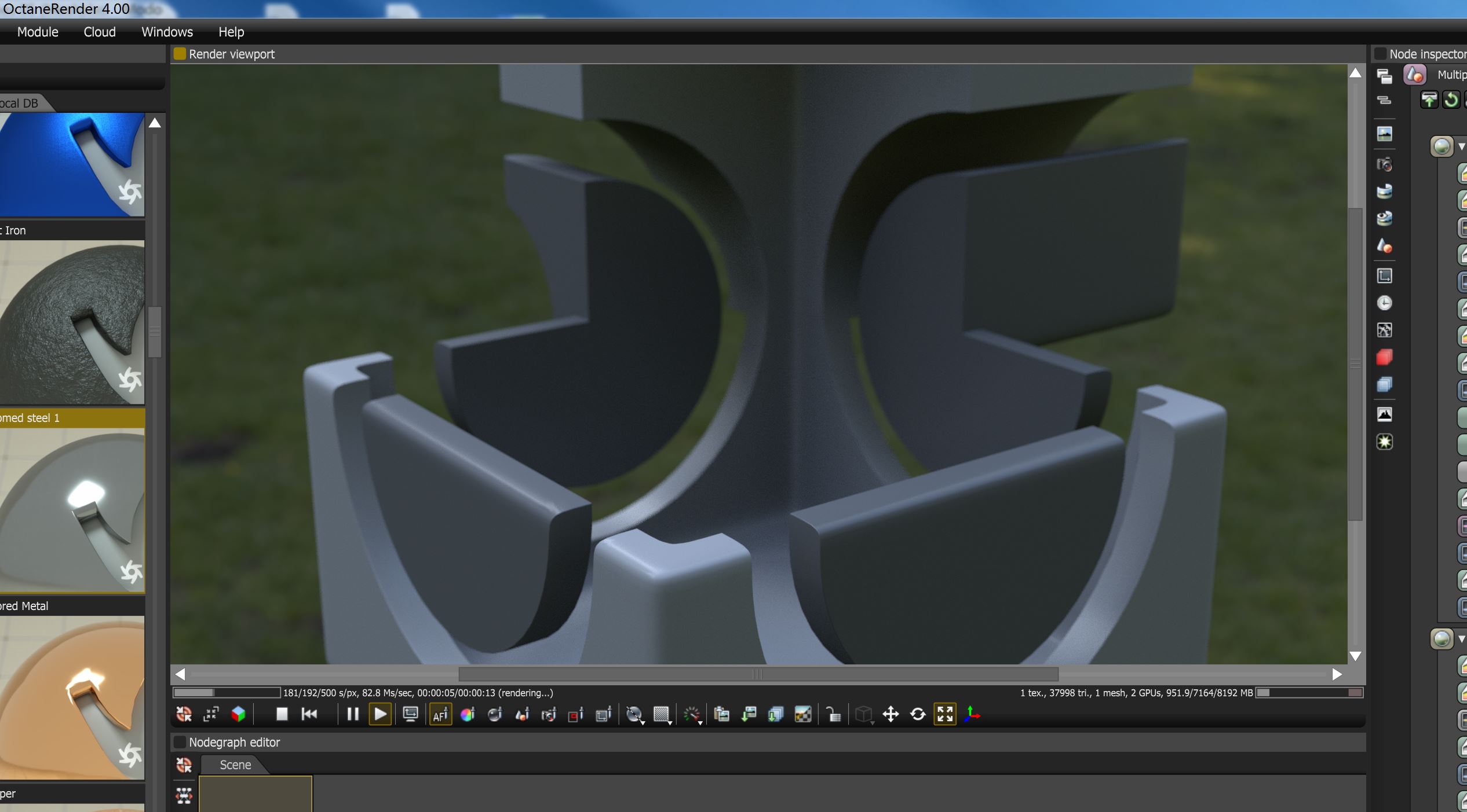 die ersten Materialzonen vergeben und in Octane die Sauberkeit der Kanten geprüft...