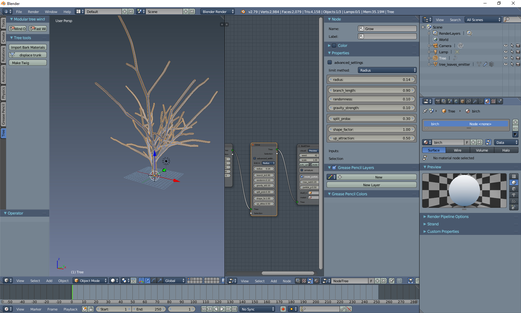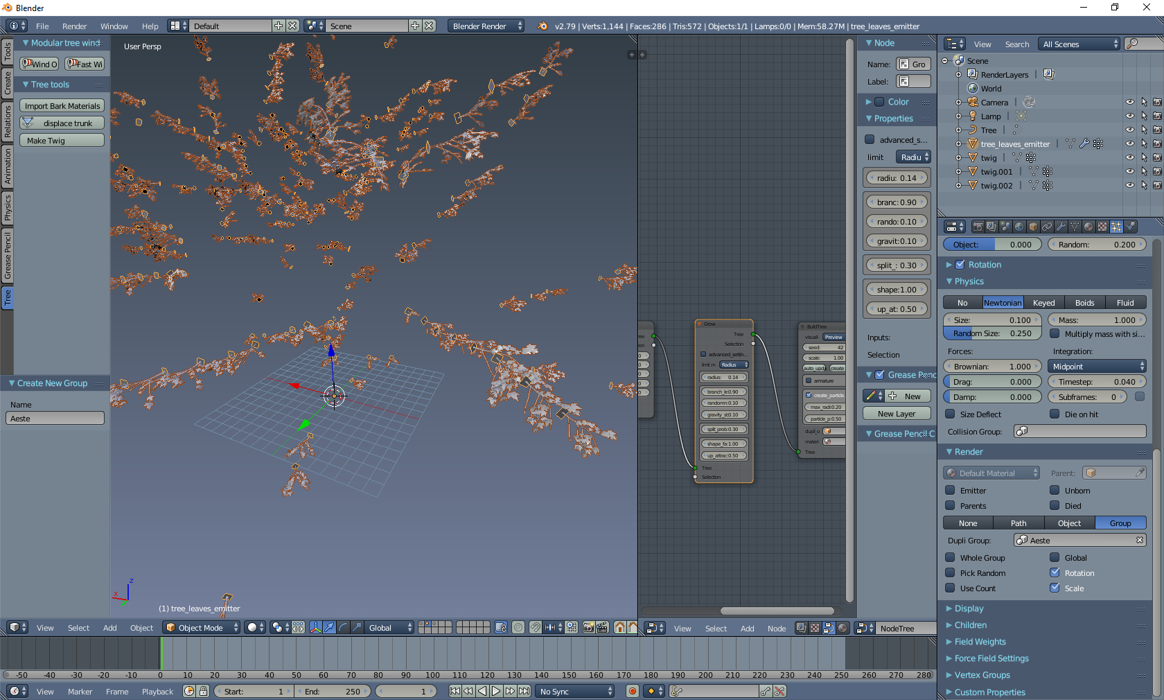 Verwendet wird blender 2.79a und Modular Tree 3.0.0