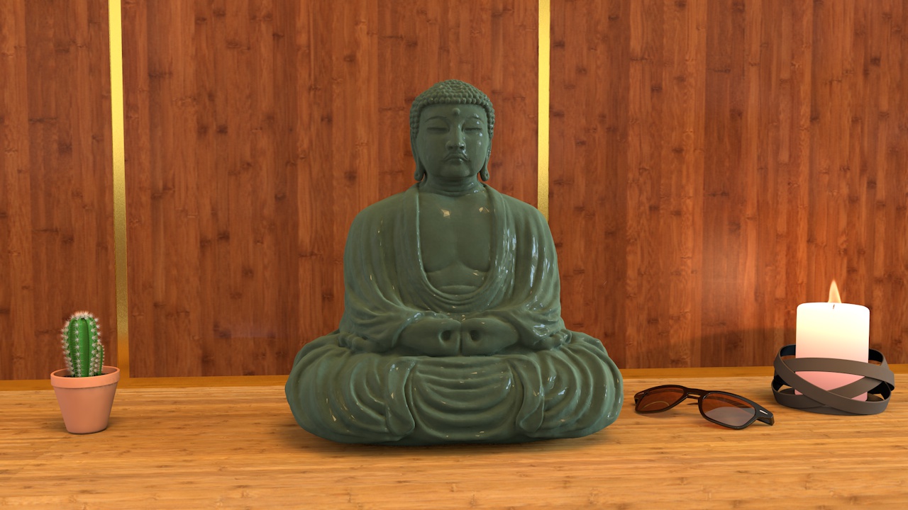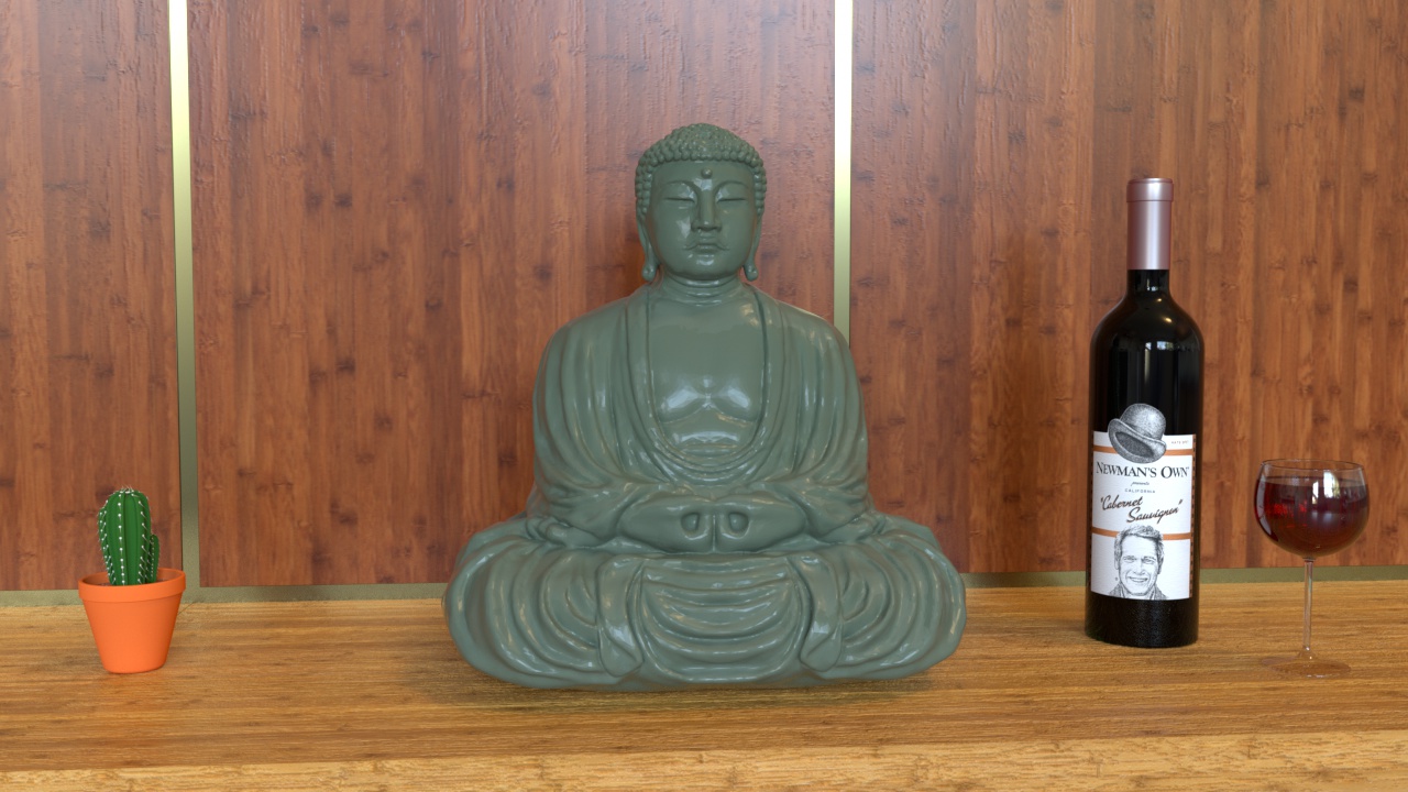 Credits: Buddha Freebe, Brille - Freebe von Pixellab, Weinflashe und Glas V-Ray-HQ Details . Die Flamme ist mit TFD gemacht.