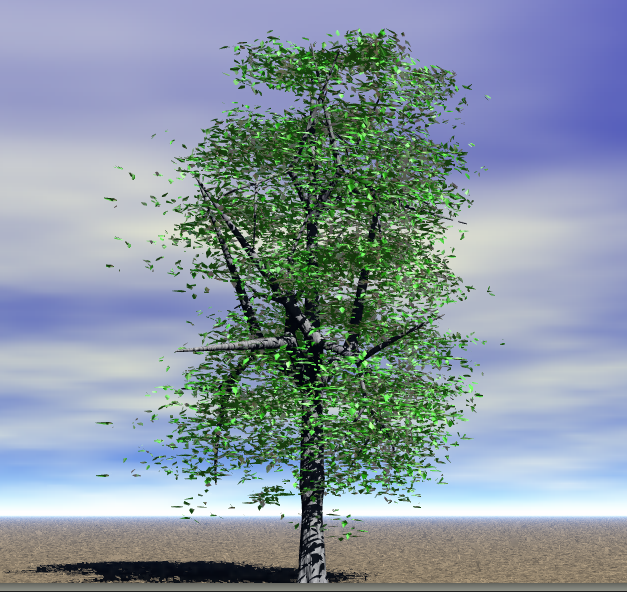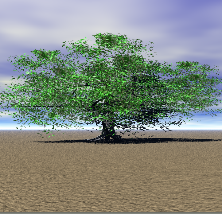 Dies ist während des Renders des PF Baums. Eigentlich fast normal. Aber in der Nachbeleuchtung reagieren speziell die Blätter nicht auf das Ambient Light. Auch wenn ich es auf 20 stelle. Aber warum ?