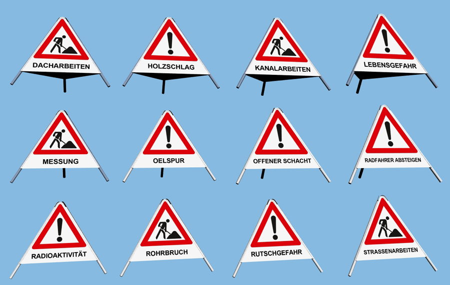 Hinweis-Aufsteller an öffentlichen Baustellen.
