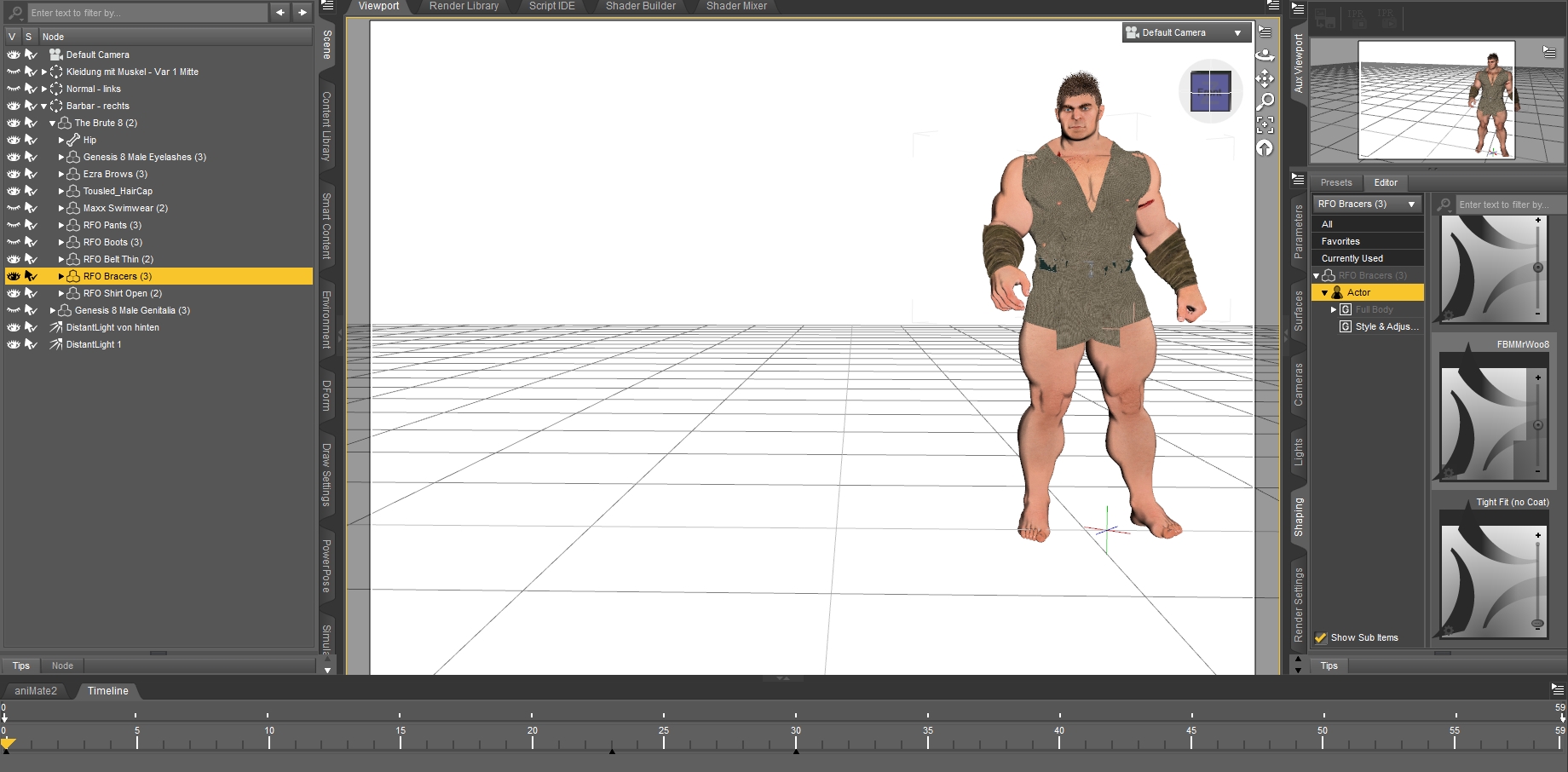 Und für das offene Hemd gibt es ein eigenes Preset, im Lauf der Simulation geht es dann auf. Du musst aber von Anfang an schon das richtige Hemd laden, denn das geschlossene ist buchstäblich zusammengenäht, das kann nicht aufgehen.