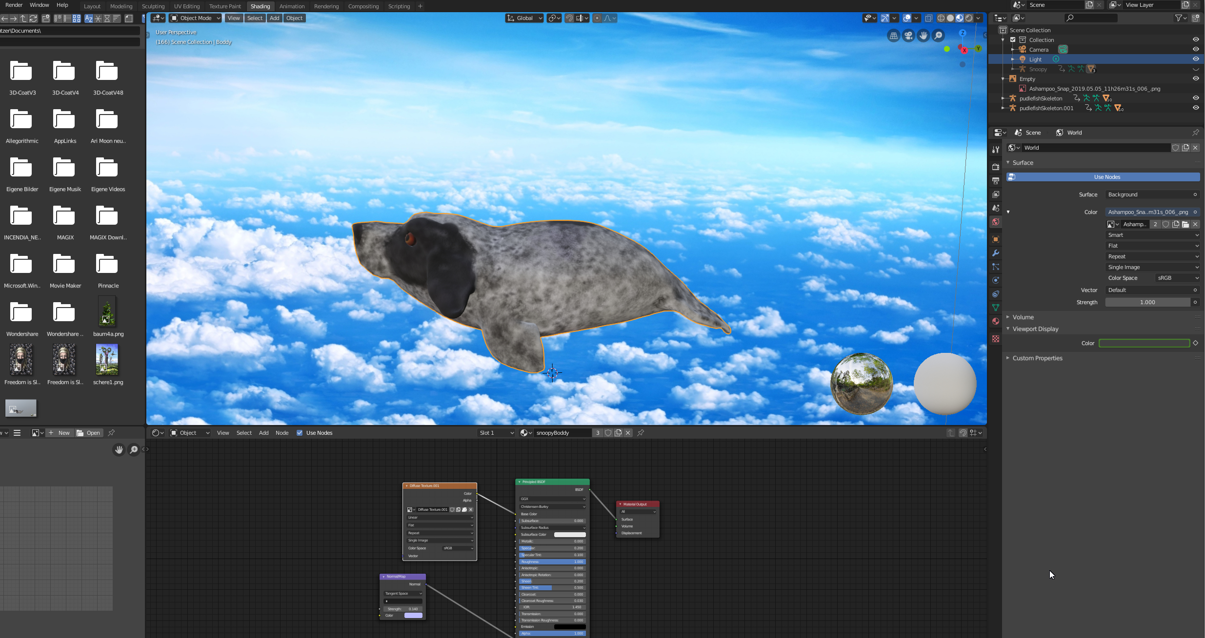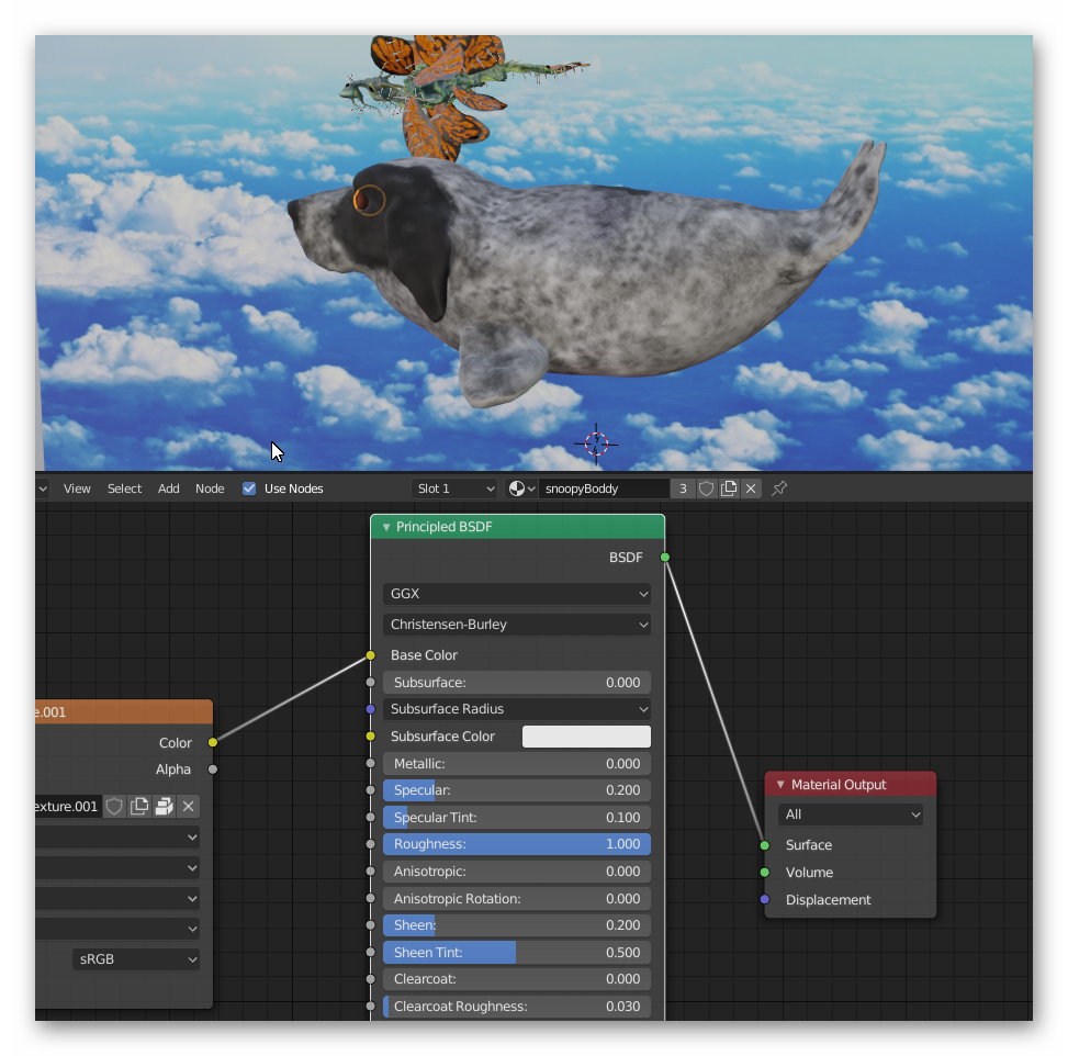 Dann hatte ich für den Snoopy eine UV für alles, aber die Augen sind eigene Objekte, für die ich den Glanz gerne erhöhen wollte. Leider verändert sich aber immer das ganze Material, nicht nur das der Augen obwohl ich nur diese angeklickt habe... das kann man bestimmt irgendwo einstellen?