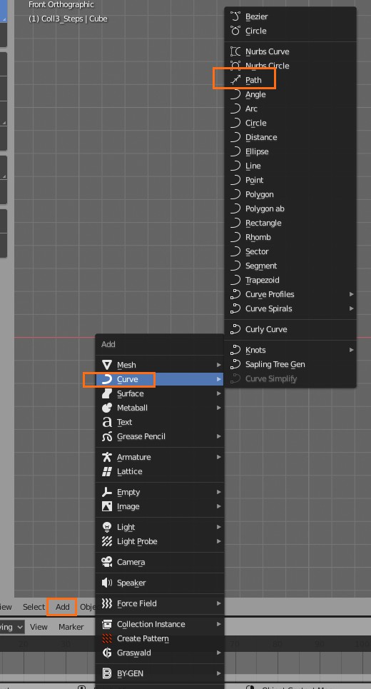 leider benutze ich sonst vue, dort entsteht der Pfad automatisch, wenn ich mein objekt zu einer bestimmten Zeit an einem bestimmten Ort plaziere. In Blender 2.7 habe ich so eine Kurvenfunktion auch gefunden im Edit mode und konnte mein Objekt somit bewegen. In Blender 2.8 war an der stelle unter "Add" leider solch eine Kurvenfunktion nicht mehr finden können.