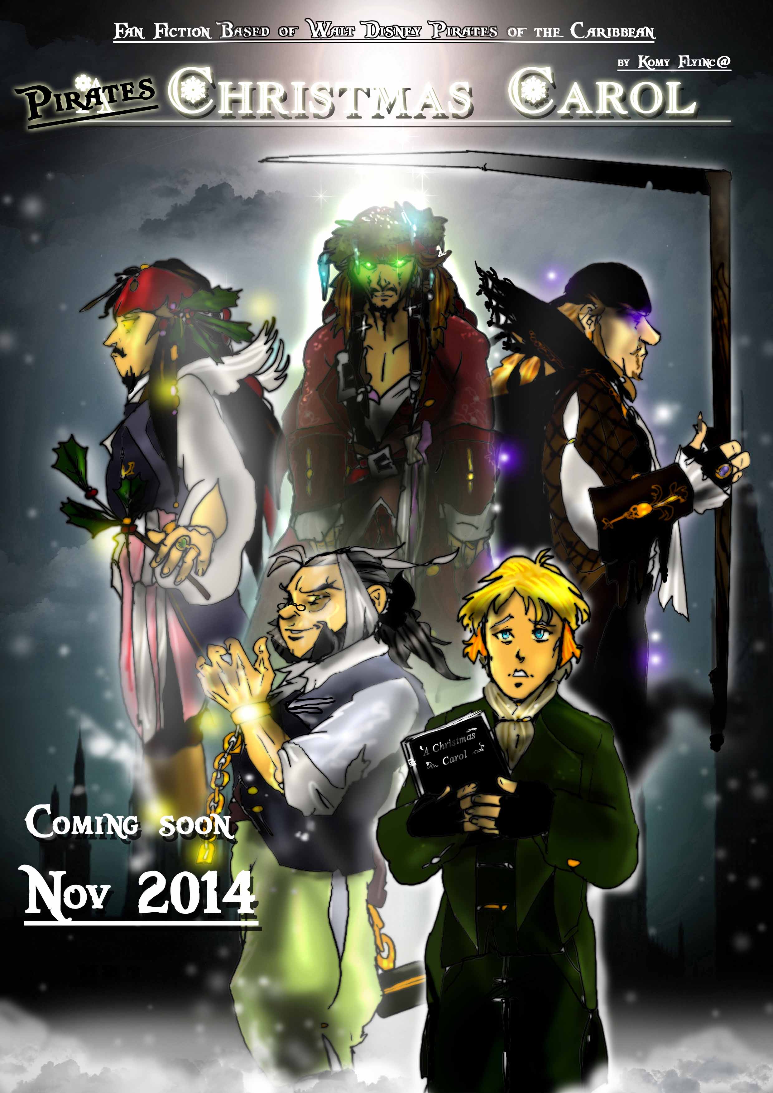 Yoho,ihr Lieben,es ist soweit..wie schon angekündigt beginnt ab heuer den ersten November der Comic-A Pirate Christmas Carol! Ein Remake aus dem Jahr 2006/7 . Die Geschichte war damals ein Adventspecial und nur 24 Seiten lang und recht komprimiert logischerweise,darum habe ich nun beschlossen diese wunderschöne Geschichte nochmal zu zeichen(ich bin Bekloppt,ikk weiss) aber in meinen heutigen besseren Standard,mit mehr Hintergrund,besseren Farben und mehr Geschichte -also freut euch nun bis zu Weihnachten auf eine schöne humorige Story und erlebt mit Jack Sparrow,Hector Barbossa,Teague Sparrow und Joshamee Gibbs eine zauberhafte Zeitreise in das London von 1821 um dort auf einen Jungen namens Charlie zu treffen ,der grade ein mächtiges Problem zu lösen hat-was damit auch noch Gedärme,Labskaus ,Möwen und Tante Trudel und drei Weihnachtsgeister zu tun haben..tja,das müsst ihr selber rausfinden-eure Komy Hectorlicht by KomyFly