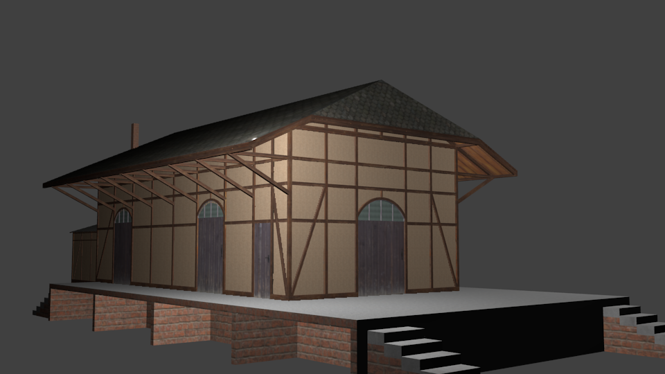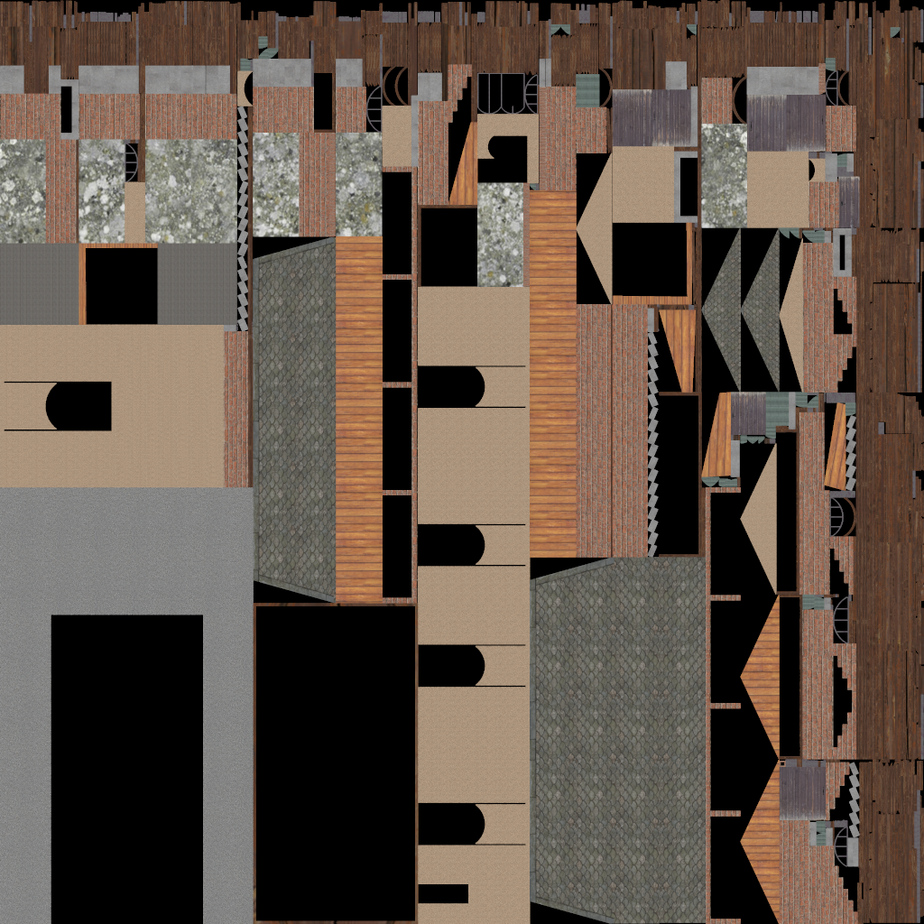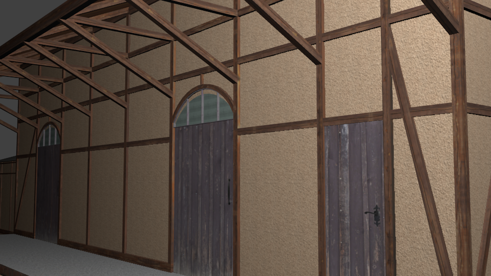 Die Fassade ist ein nahtloses Bild das x-fach gekachelt wurde. Die Holzbalkentextur hat eine Länge von 1024 px.