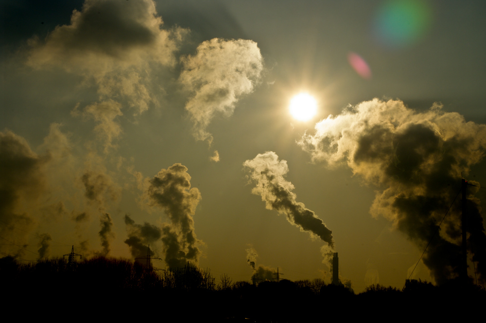 Abends wieder zuhause angekommen, musste ich gleich am Rechner guggn, was ich da bisher „an Material“ zusammen hatte und dachte mir, dass meine Bildidee durchaus klappen könnte – hätte ich, ja hätte ich doch noch eine furchtbar scheußlich dampfende Industrie – Kulisse (natürlich alles gefiltert und absolut unschädlich ;) )…