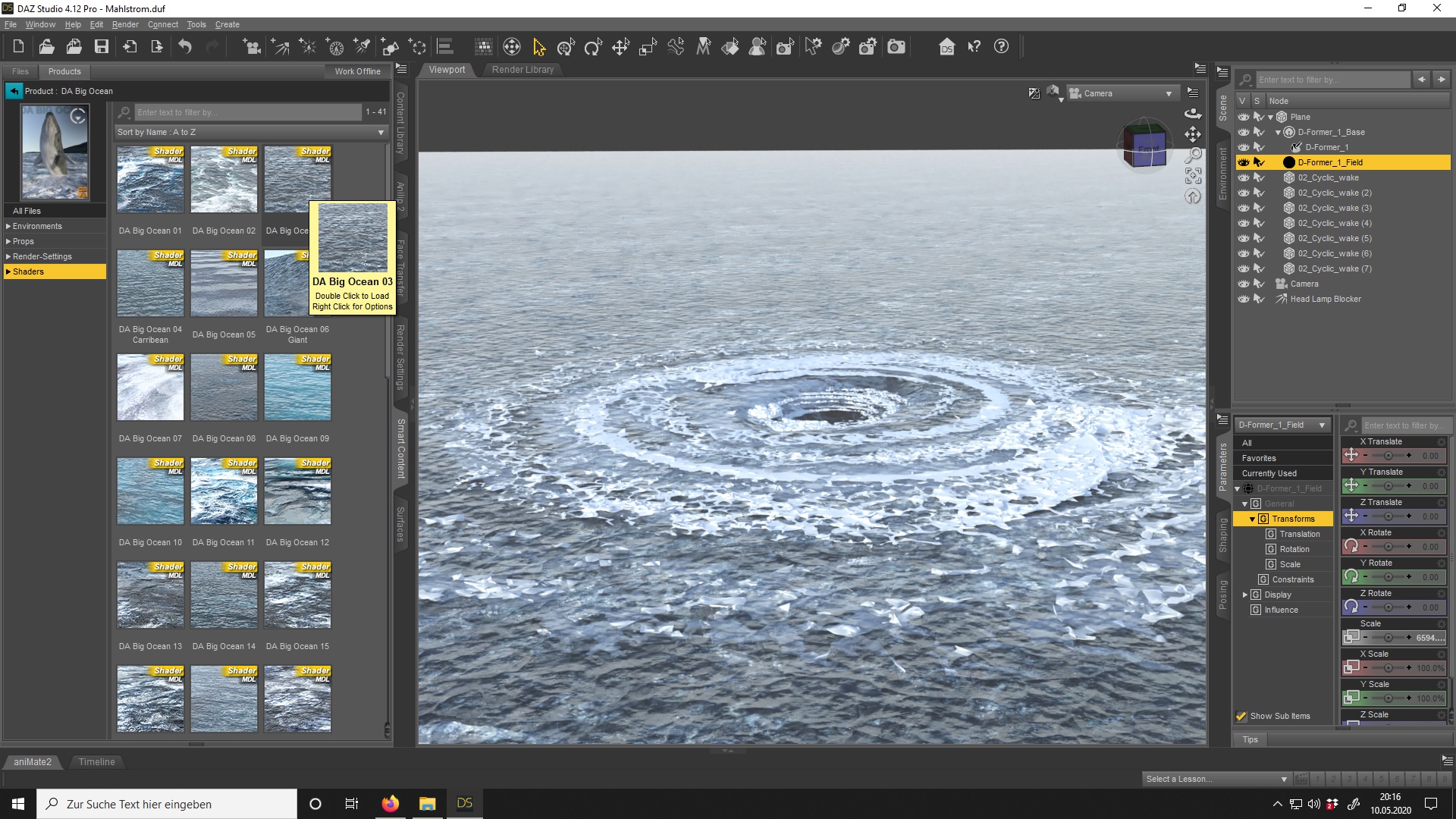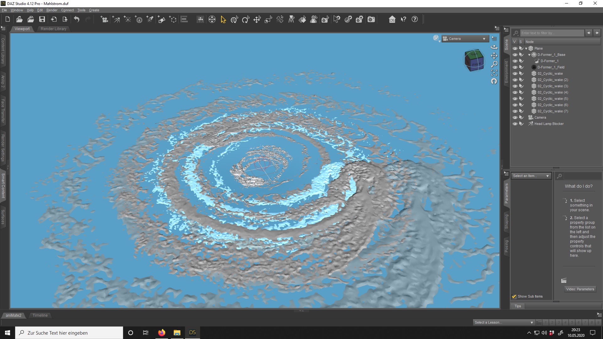 genommen und davon die Cycle _wake 02 genommen.Mehrere kopiert,dupliziert und rotieren lassen,insgesamt sind es nun sieben Props und eine Plane