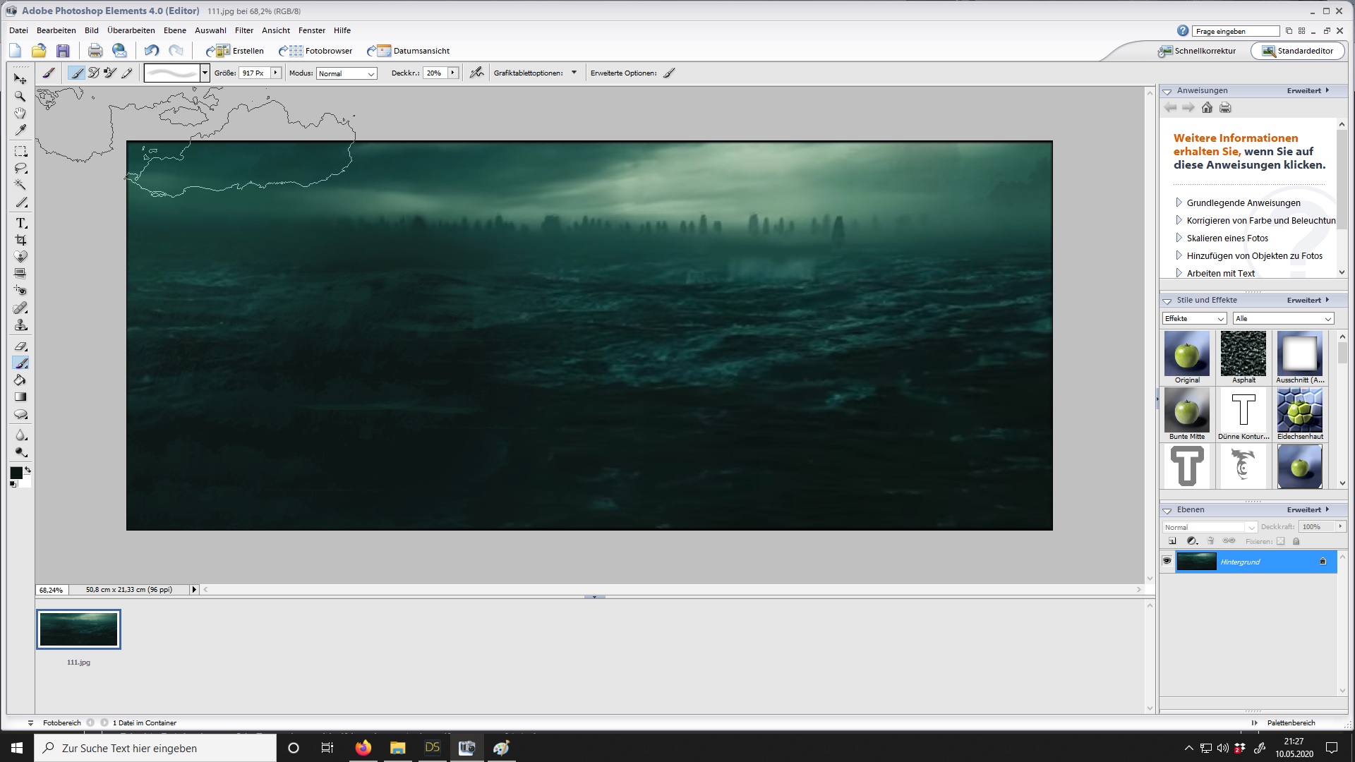 ich merge mir noch eine selbsterstellte Plane,die ich umbenannte in Background und arbeite nun mit ihr um den wundervollen gewittrigen Himmel zu erstellen,dazu zwitsche ich zu meinen Adobe Photoshop Elements hinne und zeichne mit verschiedenen Brushes und Wischfingertools einen ziemlich dunklen epischen Himmel...Uhhhhh*