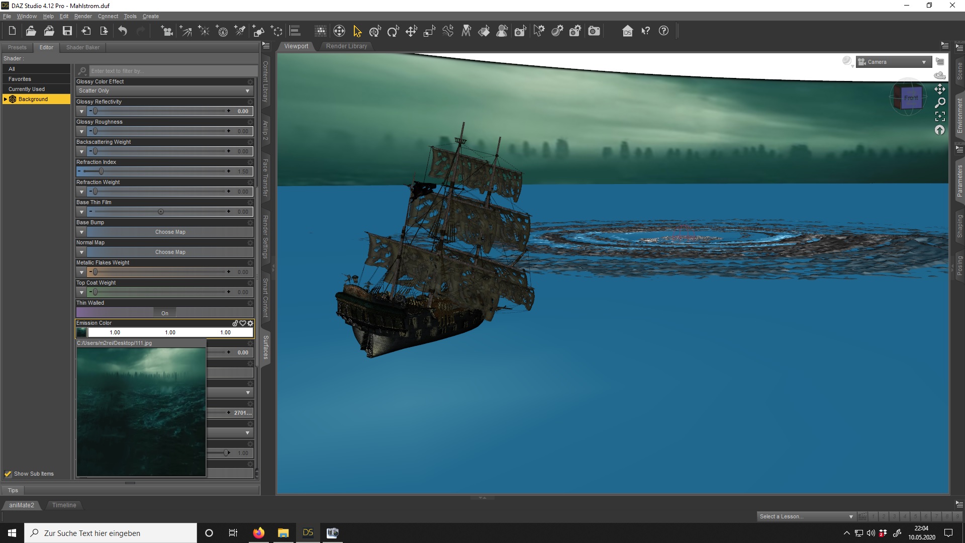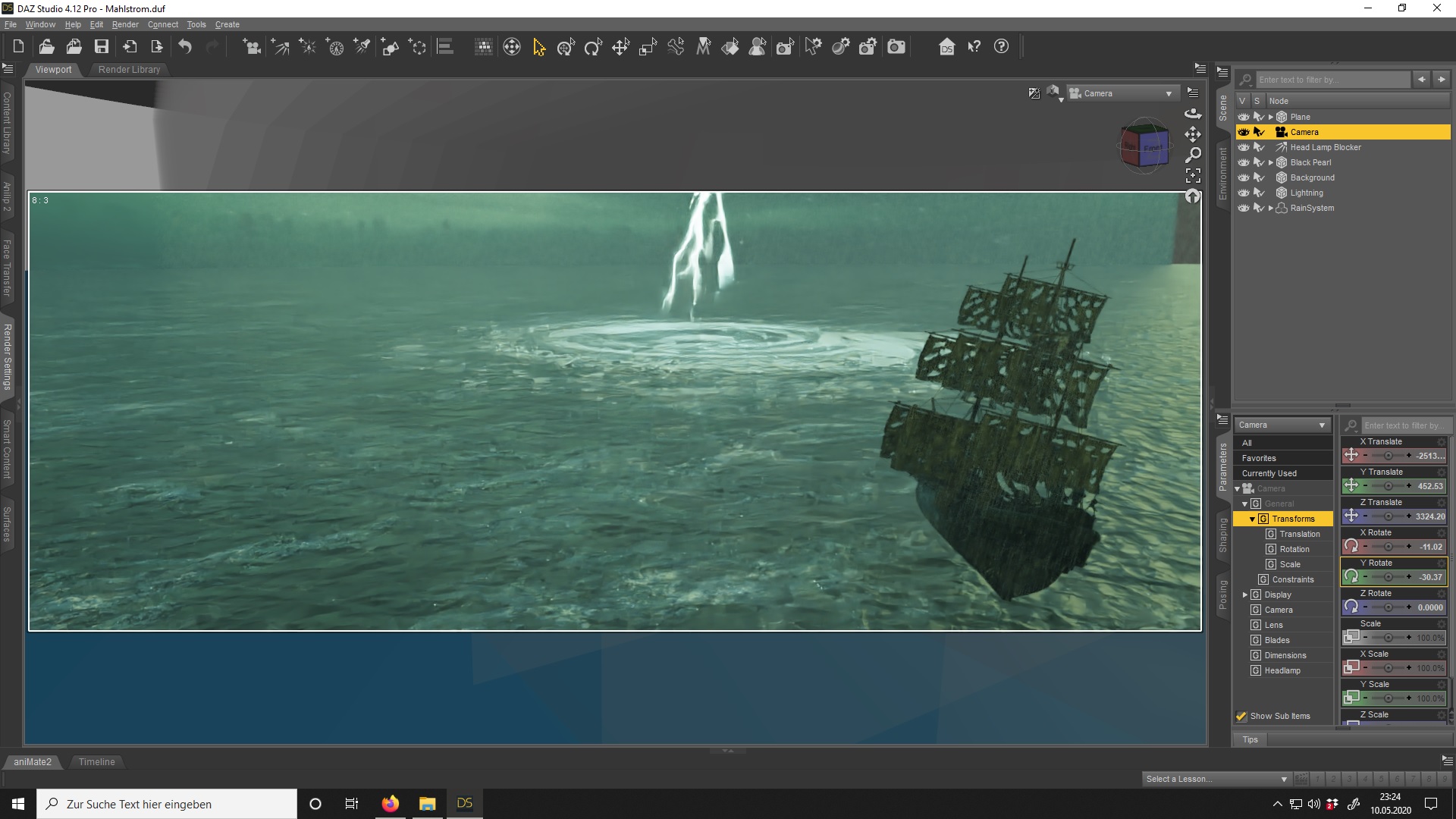Noch achte ich noch garnicht auf Beleuchtung und Hintergrund ,dett kommt später.Als nächstes hole ikk meine schöne Black Pearl aus meinen Content und merge sie in die große Szene ein.Hmpf*