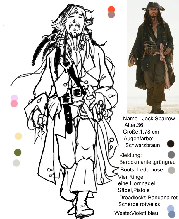 und die sollten schon mal gezeichnet werden .Die Hauptfigur (in den Fall) Captain Jack Sparrow sieht ja in echt so aus---->Captain Jack Sparrow